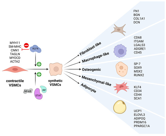 - Yap, C.; Mieremet, A.; De Vries, C.J.M.; Micha, D.; De Waard, V. Six Shades of Vascular Smooth Muscle Cells Illuminated by KLF4 (Krüppel-Like Factor 4). Arterioscler. Thromb. Vasc. Biol. 2021, 41, 2693–2707. [Google Scholar] [CrossRef] [PubMed]