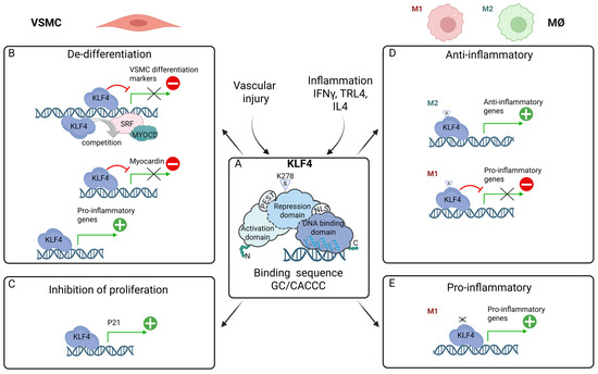 - Zheng, B.; Han, M.; Wen, J.K. Role of Krüppel-like Factor 4 in Phenotypic Switching and Proliferation of Vascular Smooth Muscle Cells. IUBMB Life 2010, 62, 132–139. [Google Scholar] [CrossRef]