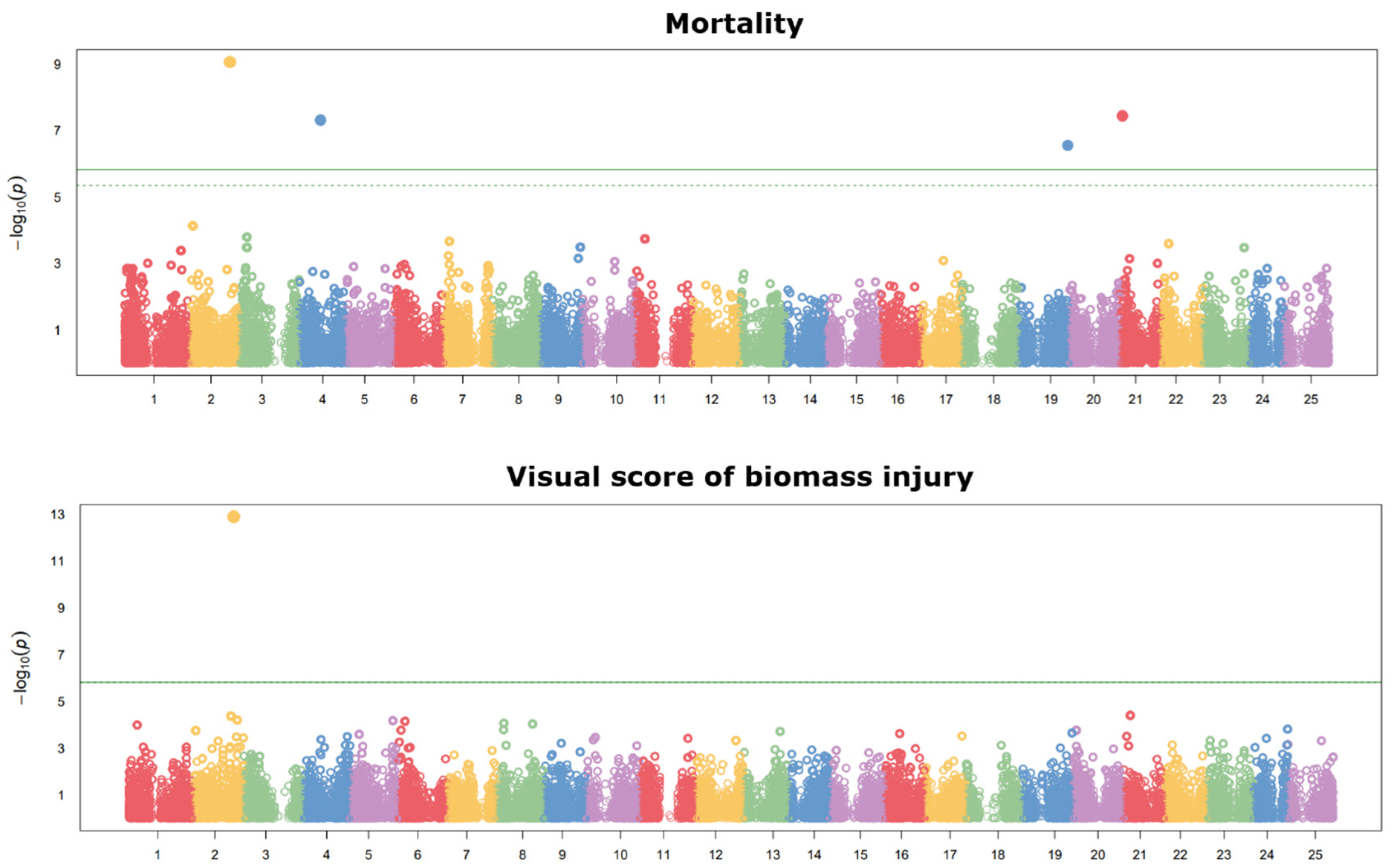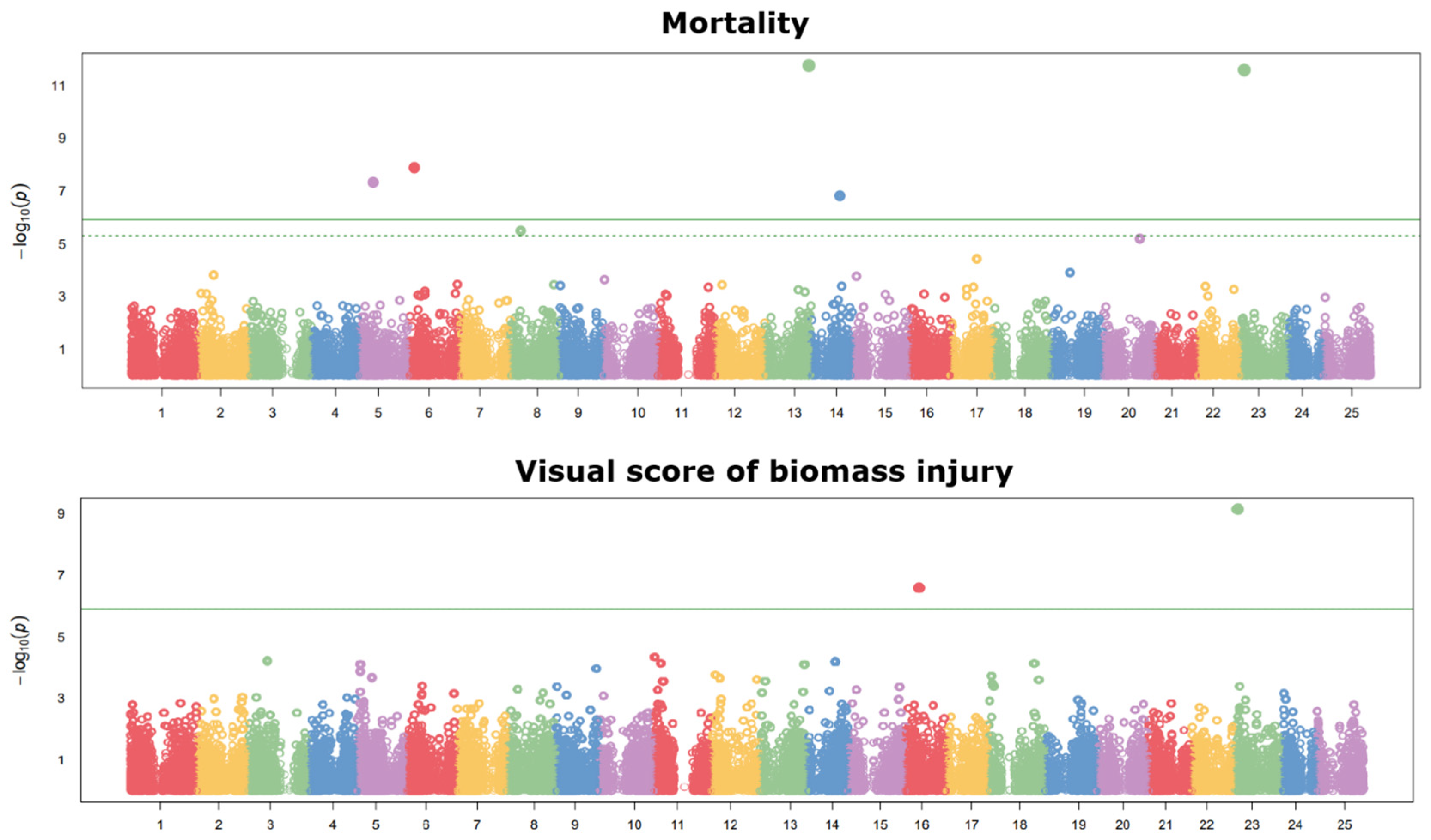 | Chr23_1146188 | 1 | Mortality, visual score | - | - |