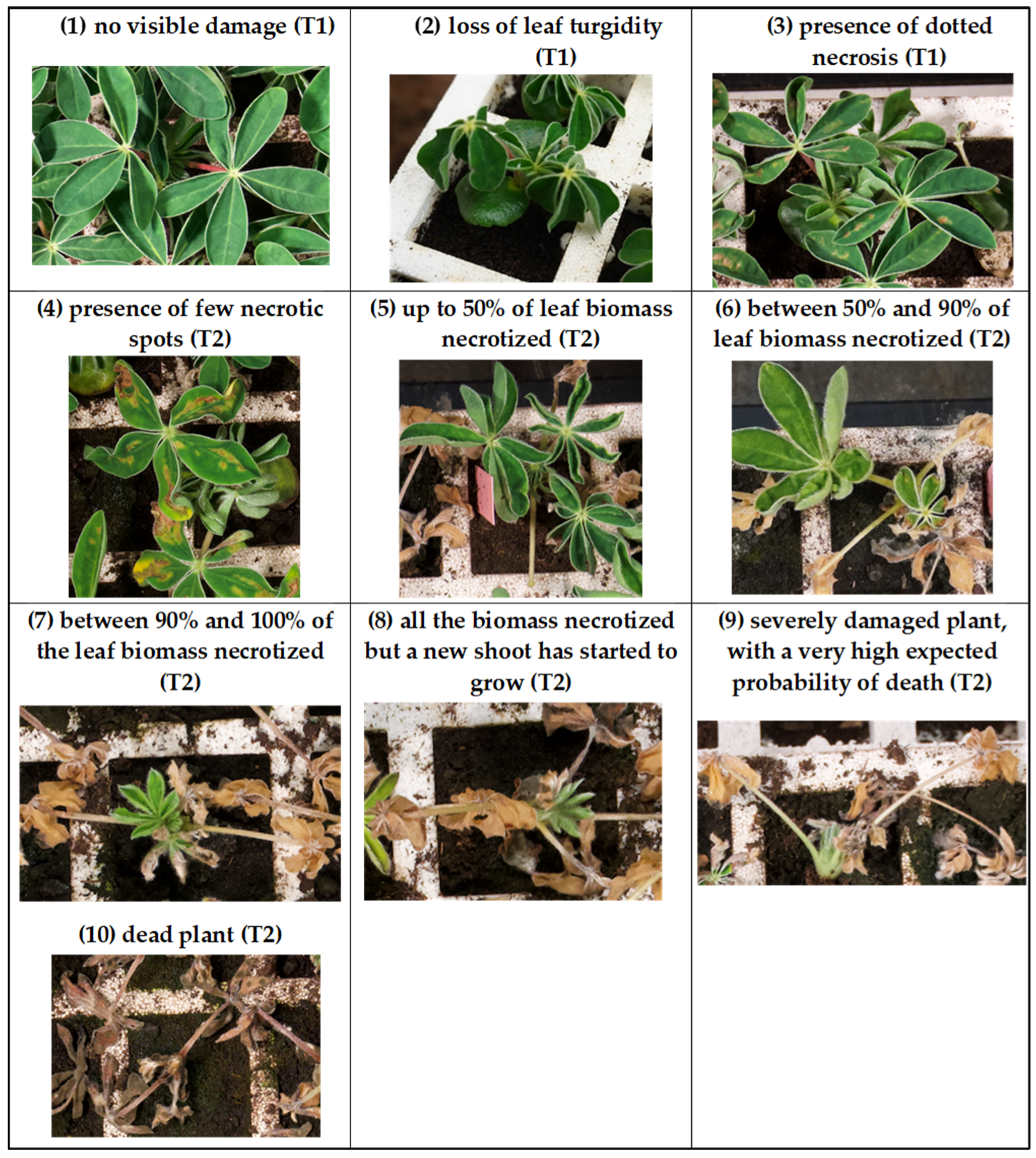 - Pecetti, L.; Annicchiarico, P.; Crosta, M.; Notario, T.; Ferrari, B.; Nazzicari, N. White lupin drought tolerance: Genetic variation, trait genetic architecture, and genome-enabled prediction. Int. J. Mol. Sci. 2023, 24, 2351. [Google Scholar] [CrossRef]