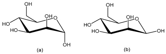 d-Mannose in cyclic forms; (a) α-mannopyranose and (b) β-mannopyranose.