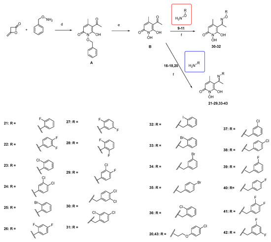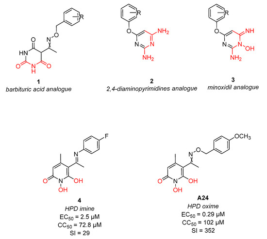 5-acetyl-1,6-dihydroxy-4-methylpyridin-2(1H)-one (B) (0.55 mmol, 1 equiv.) is added to a solution of the appropriate hydroxylamine (0.57 mmol, 1.1 equiv.) in abs. EtOH (2 mL), and the reaction mixture is stirred at RT, under Argon, for 1.5–22 h. Thereafter, the solvent is evaporated under vacuum. The solid residue is triturated with Et2O under ice to afford the desired compound.