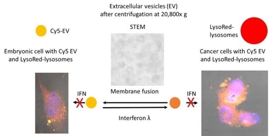 - Giannessi, F.; Percario, Z.; Lombardi, V.; Sabatini, A.; Sacchi, A.; Lisi, V.; Battistini, L.; Borsellino, G.; Affabris, E.; Angelini, D.F. Macrophages treated with interferons induce different responses in lymphocytes via extracellular vesicles. iScience 2024, 27, 109960. [Google Scholar] [CrossRef] [PubMed]