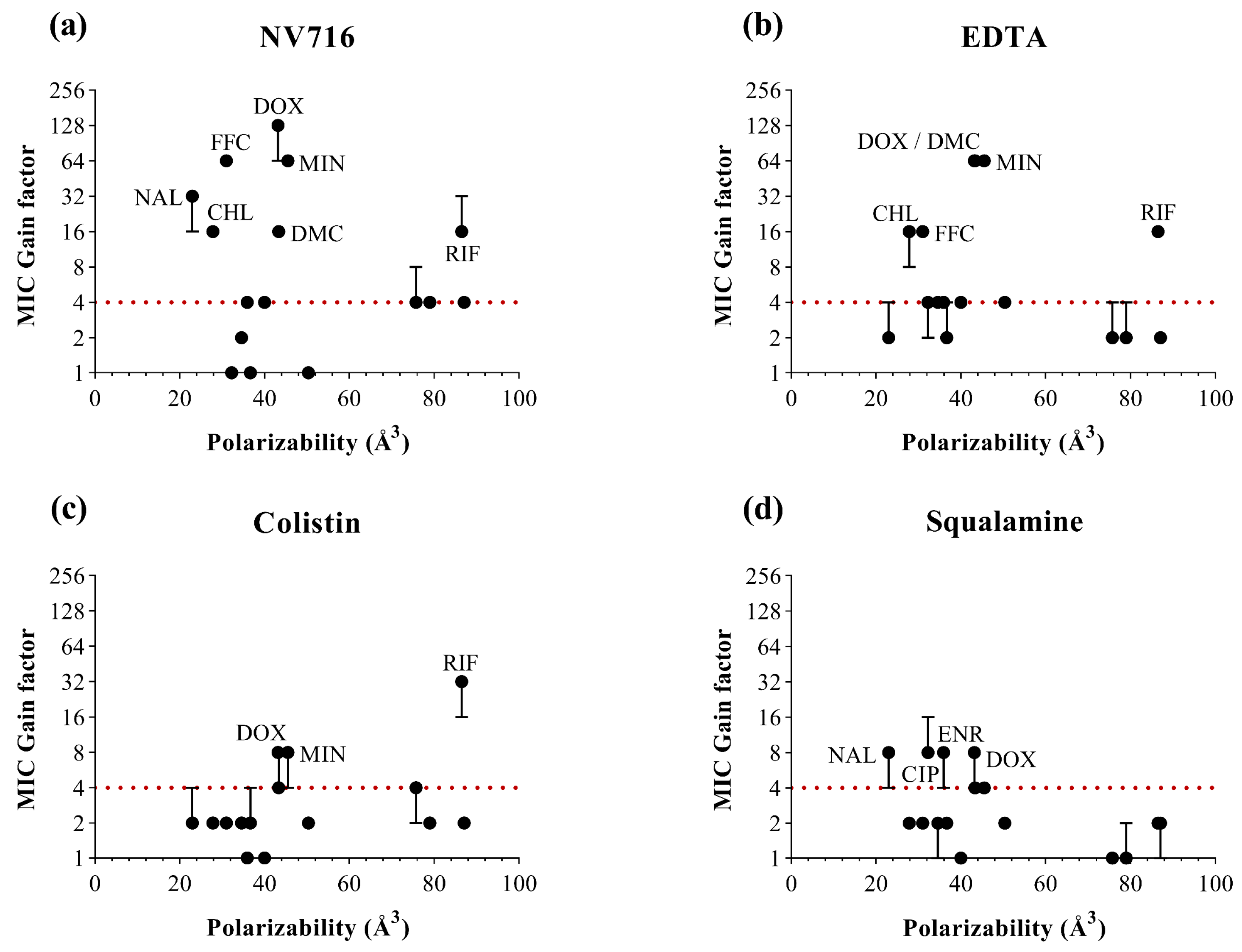 2.2. Correlation Between Potentiation and Physicochemical Properties of Antibiotics