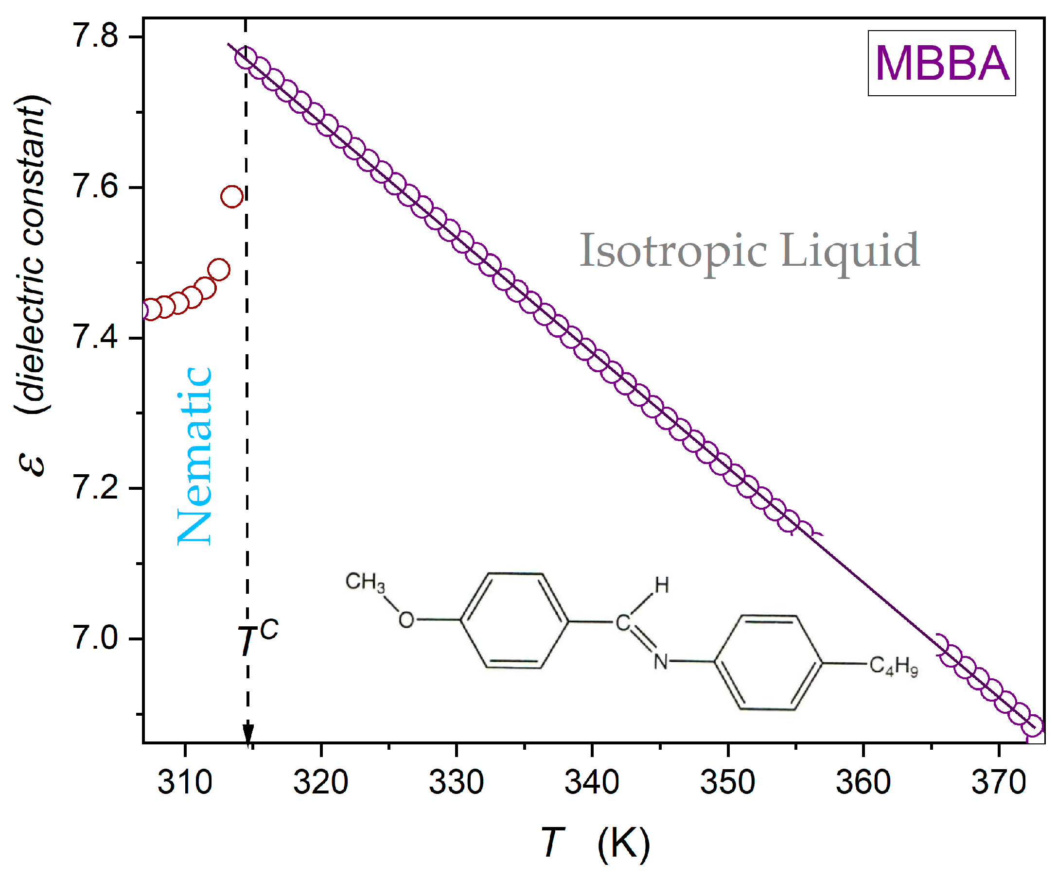 Following Equation (13), it leads to the following dependence in the isotropic liquid phase of nematic LC: