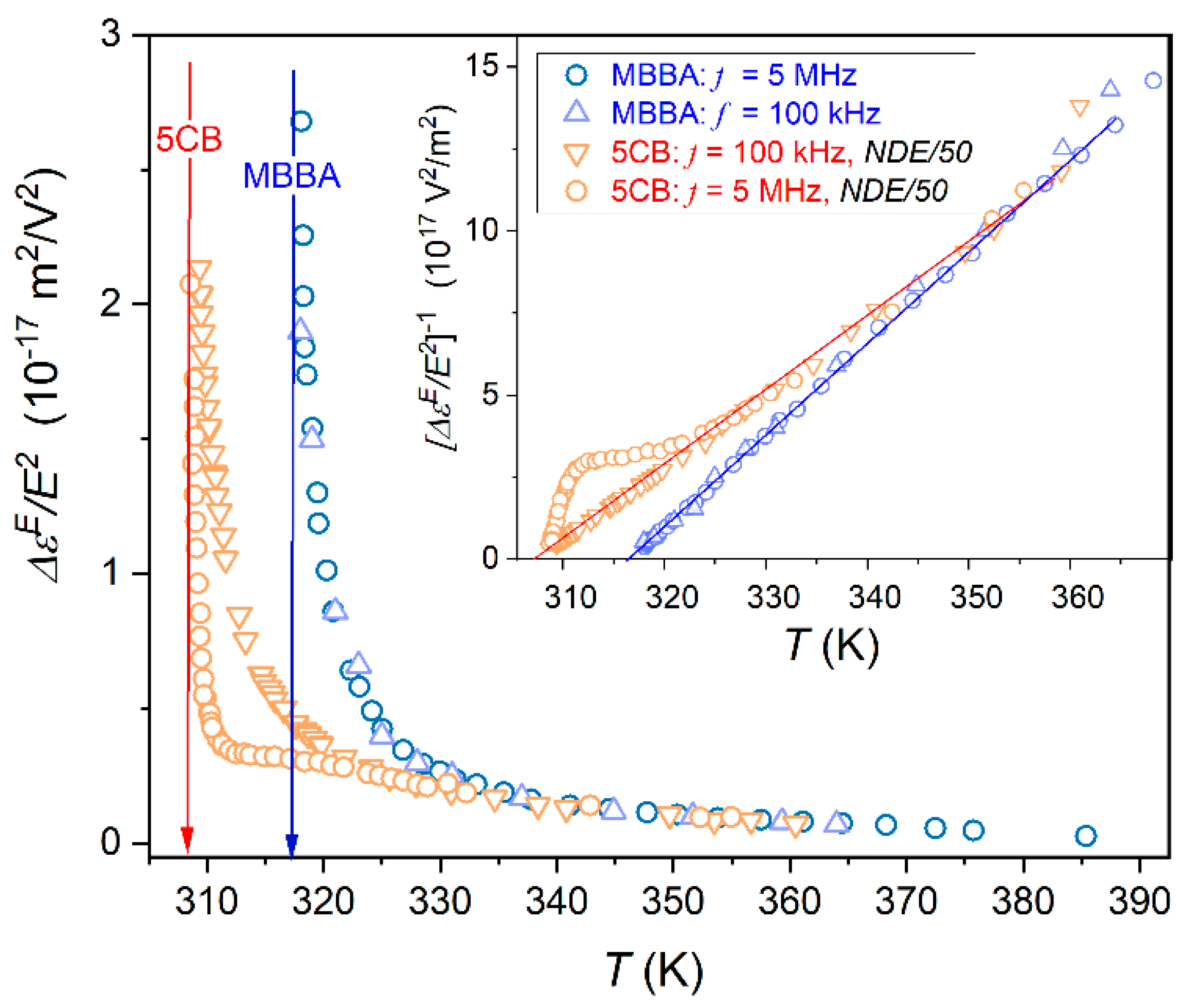 63] becomes particularly important, as demonstrated by the discussion of Equations (13) and (14). It enables a consistent description of pretransitional effects, including KE, LS, and NDE. For the latter, it includes the unusual negative NDE shown in