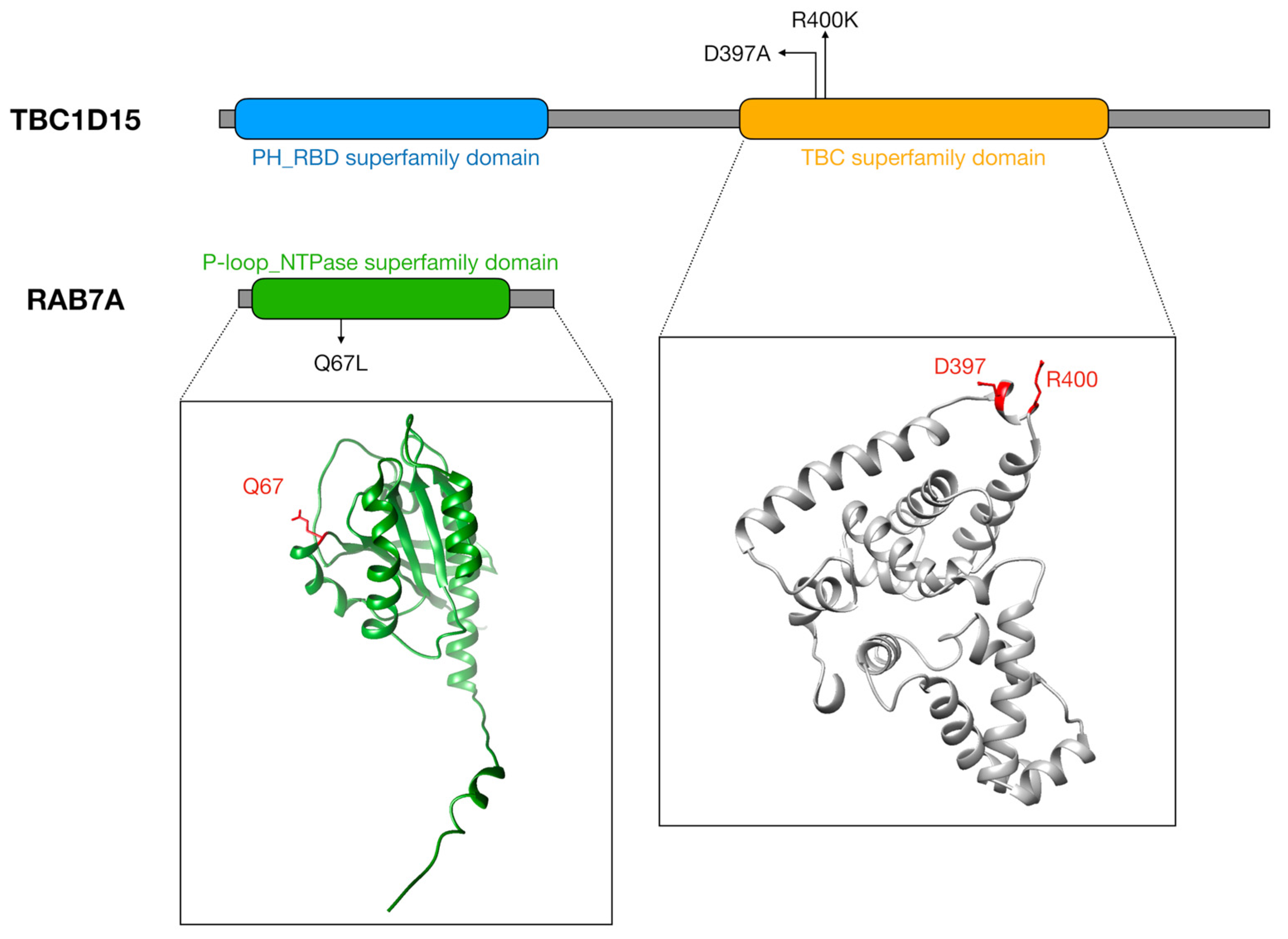 - Zhang, X.-M.; Walsh, B.; Mitchell, C.A.; Rowe, T. TBC Domain Family, Member 15 Is a Novel Mammalian Rab GTPase-Activating Protein with Substrate Preference for Rab7. Biochem. Biophys. Res. Commun. 2005, 335, 154–161. [Google Scholar] [CrossRef]