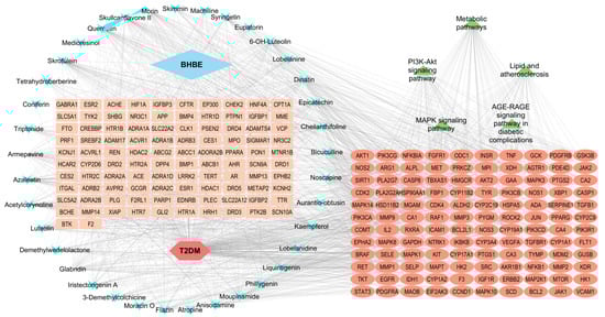 “BHBE-active components-common targets-pathways-T2DM” interaction network.