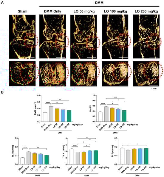 2.3. LO Leaf Extract Reduces Subchondral Sclerosis in a DMM-Induced OA Mouse Model