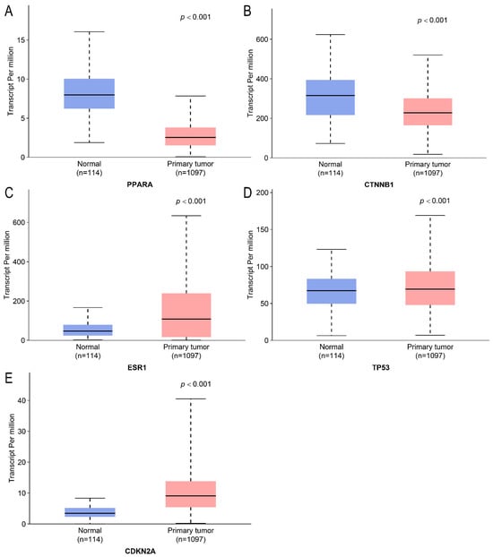 | PPARA | CTNNB1 | ESR1 | CDKN2A | TP53 | ||