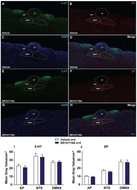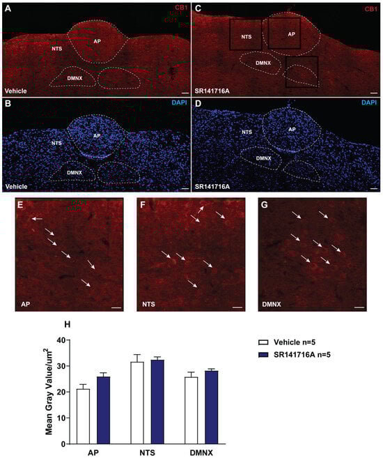 2.1. Acute Exposure to SR141716A Did Not Affect the Expression of CB1 Receptors in the Least Shrew Brainstem DVC