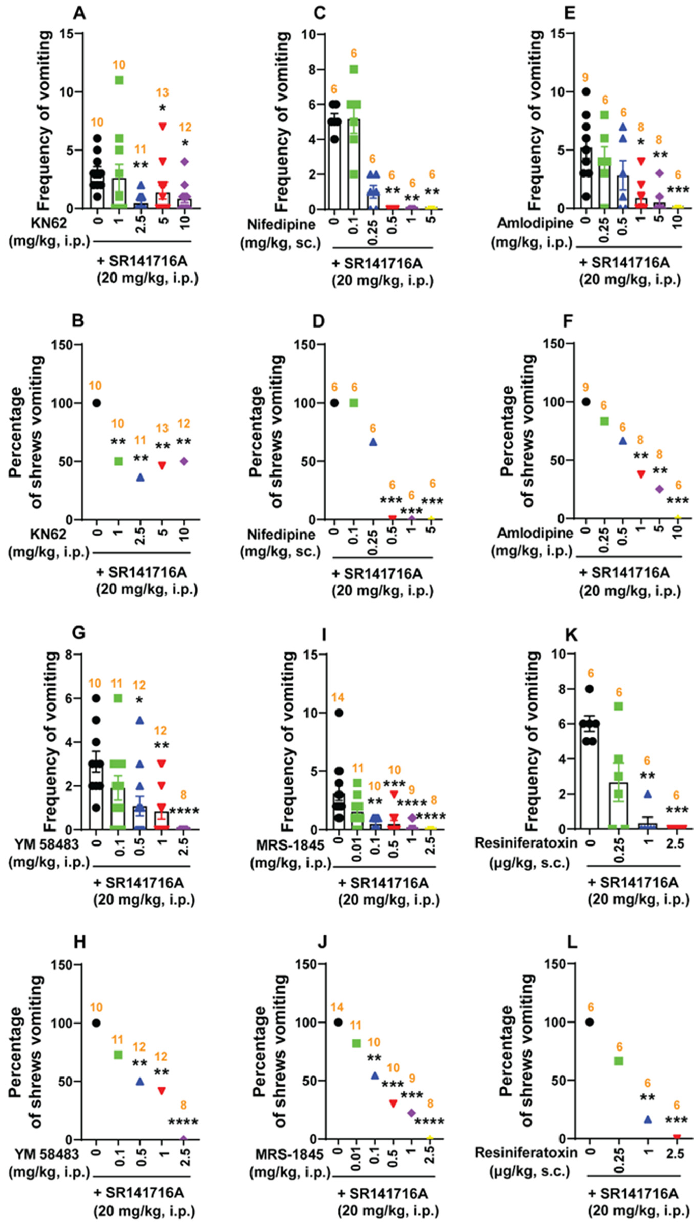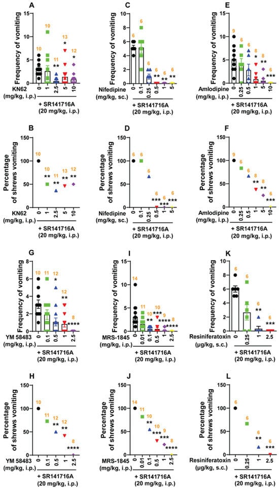 3.3. SR141716A-Induced Vomiting Involves Ca2+-Ion Channel Modulators