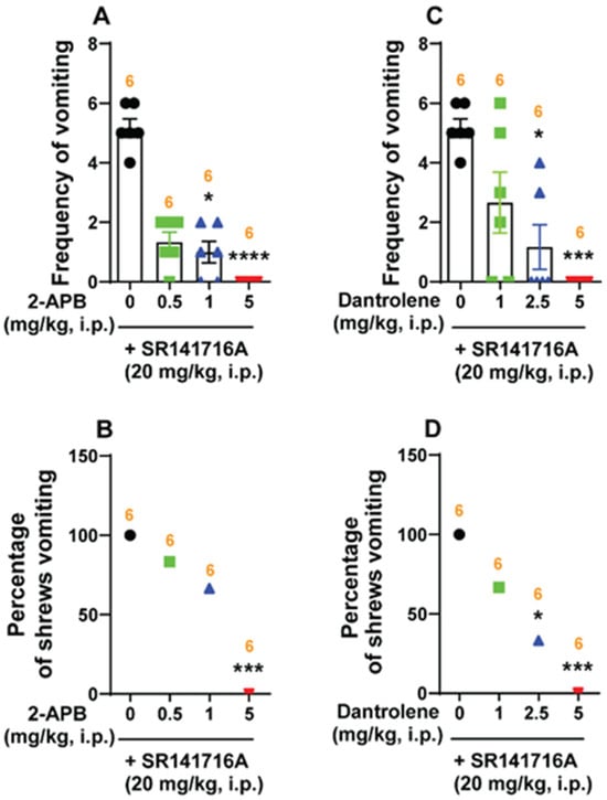 Intracellular Ca2+ Channel Blockers Reduce SR141716A-Induced Vomiting