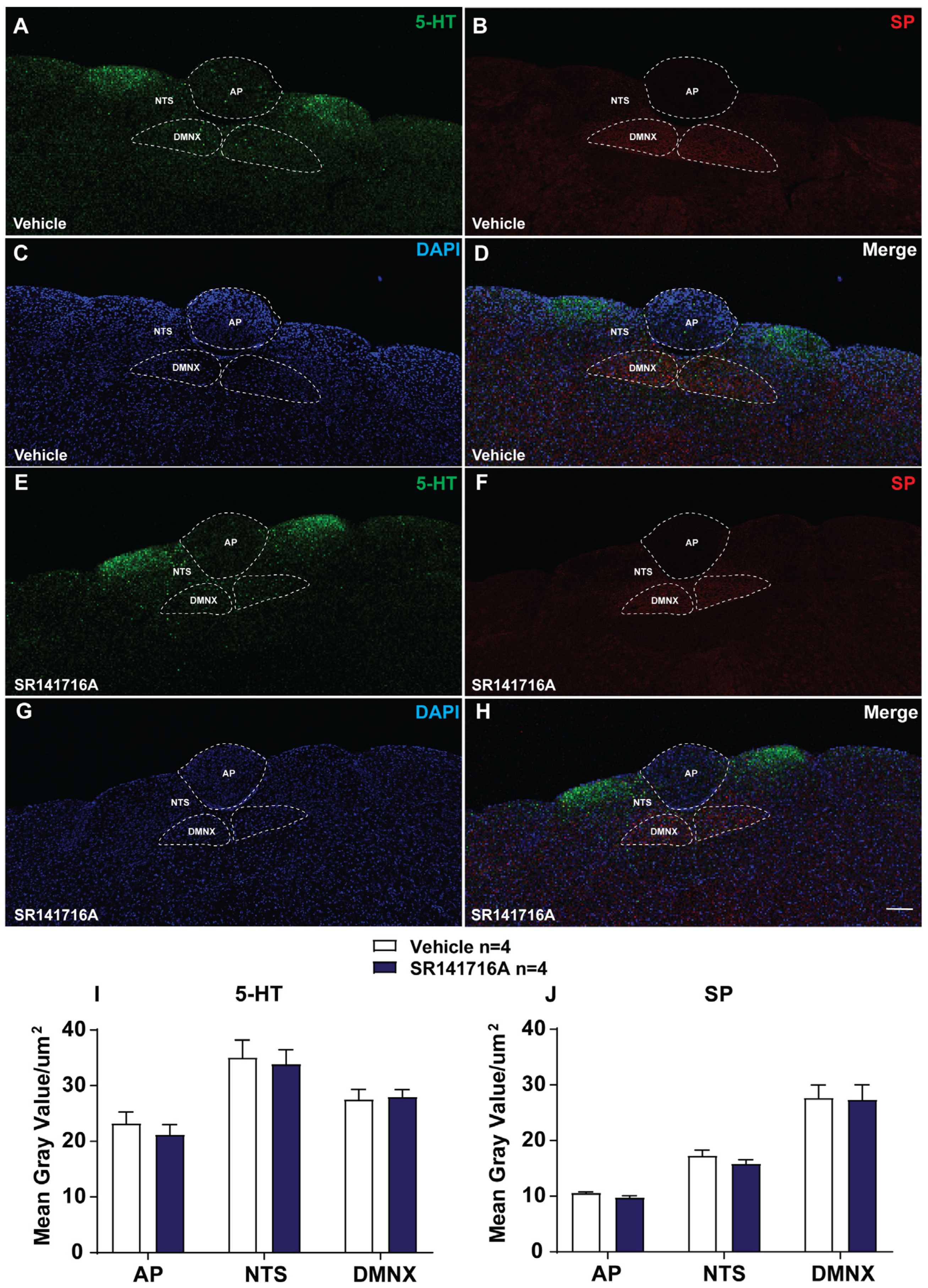 2.2.4. SR141716A Lacks Significant Effects on the Release of 5-HT and SP in Brainstem DVC