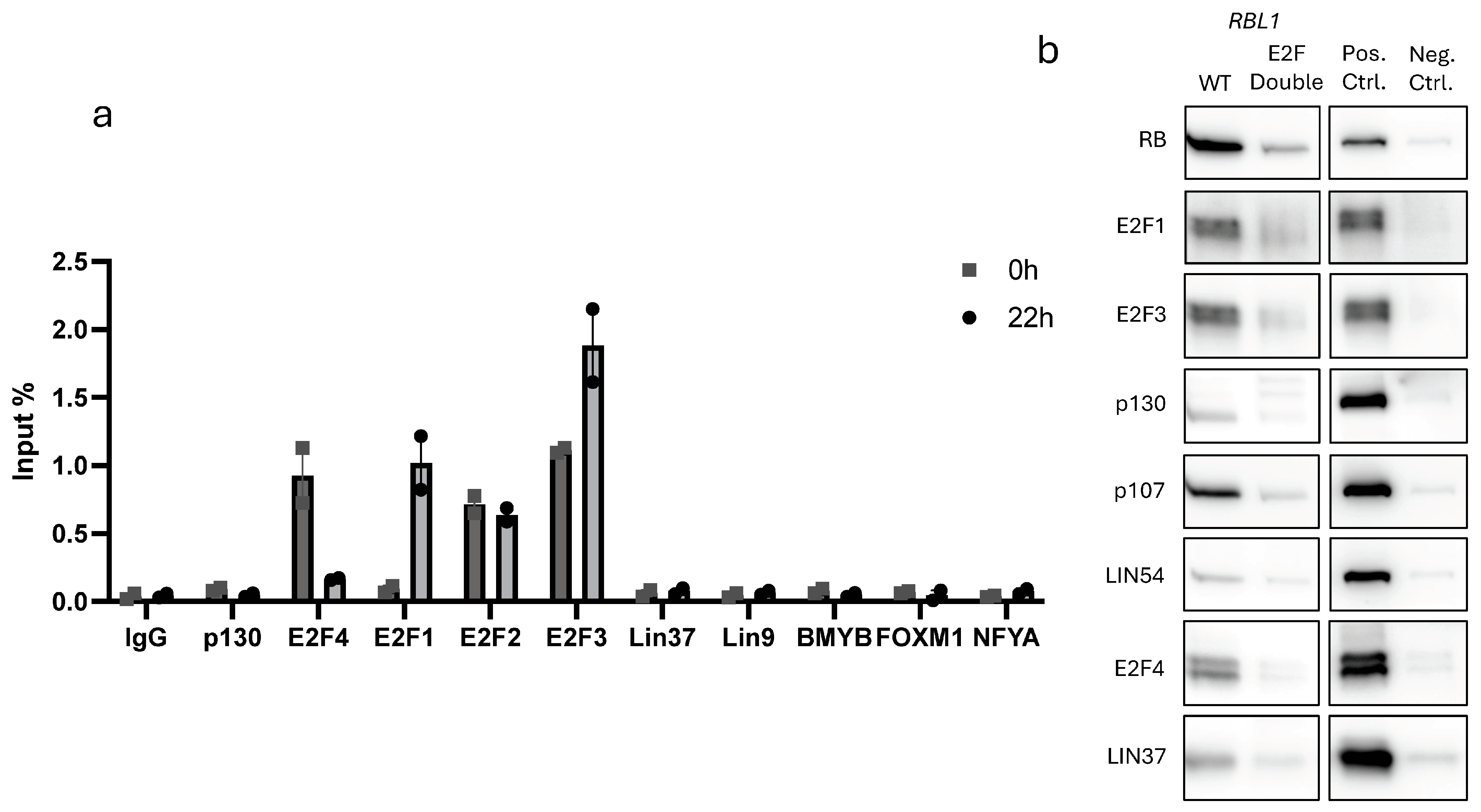2.5. E2F1–4, RB, and p107 Bind to the RBL1 Promoter Through the Two E2F Binding Sites