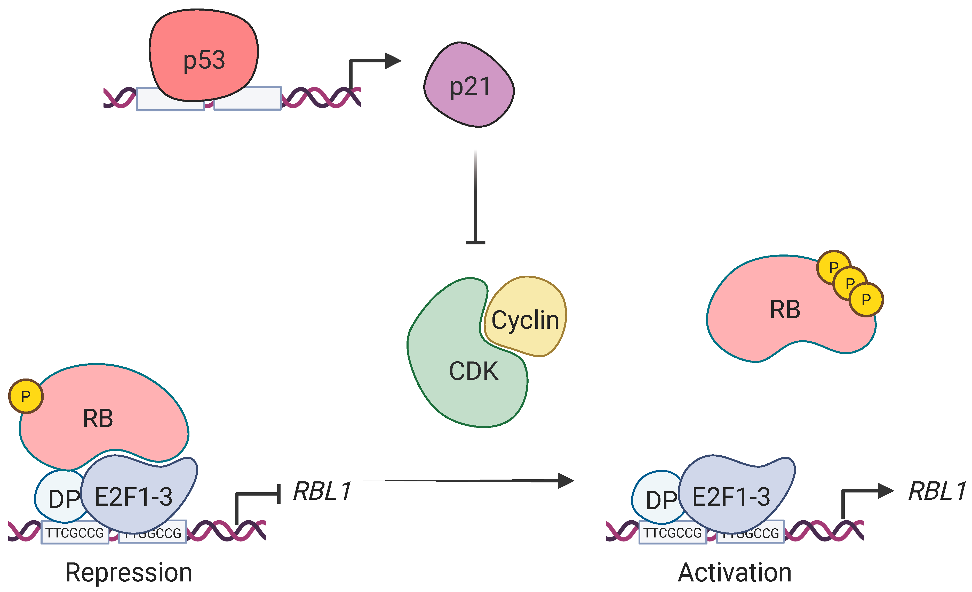 2.1. p53 Represses RBL1 Expression in a p21-Dependent Manner