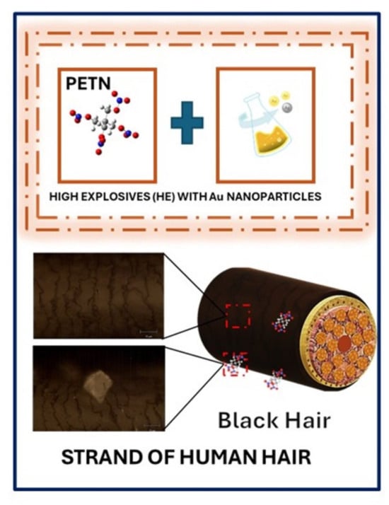 Figure 7 provides the spectra for each of the HEs under study and each of the hair types for reference. The data in this table shows the absolute and relative error from each HE, representing minor differences when comparing it to the acquired spectra. For PETN variations, one variation occurred at 1302 cm