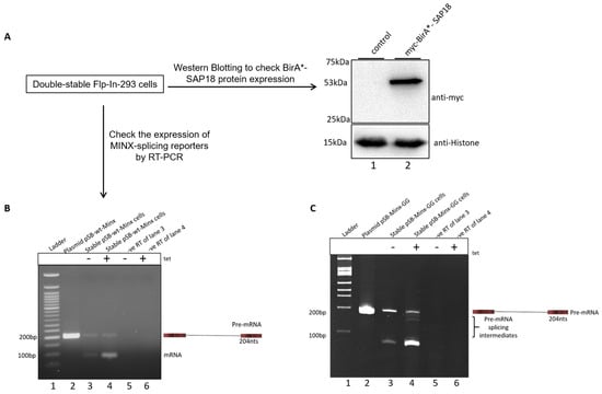 4.3. Generation of Double-Stable Flp-InTM-293 Cells Expressing BioID Fusion Proteins and Splicing Reporter