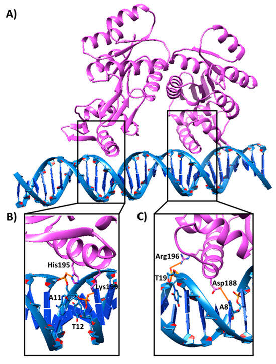 - Rodríguez-Lumbreras, L.A.; Jiménez-García, B.; Giménez-Santamarina, S.; Fernández-Recio, J. pyDockDNA: A new web server for energy-based protein-DNA docking and scoring. Front. Mol. Biosci. 2022, 9, 988996. [Google Scholar] [CrossRef]