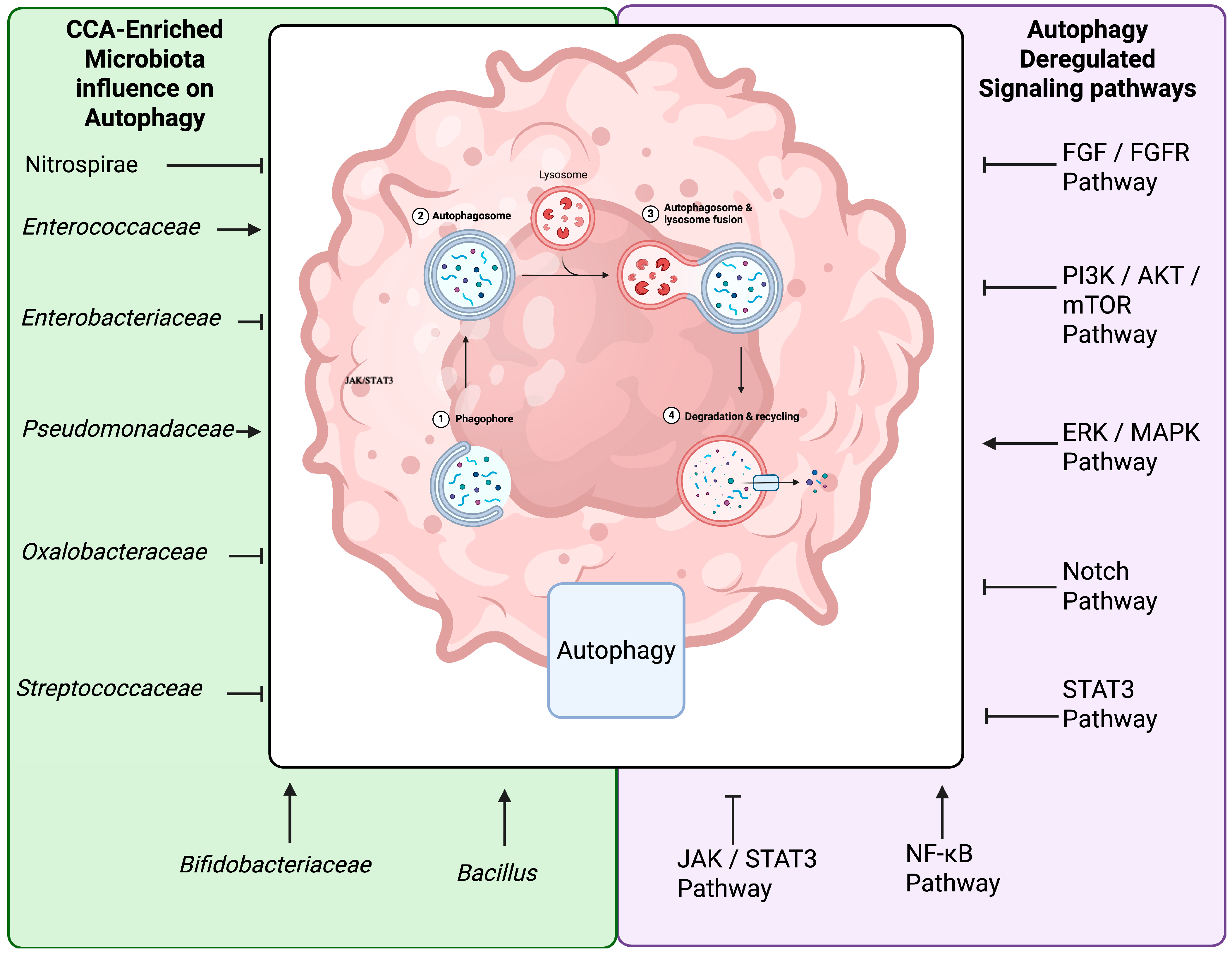 Chicago/Turabian StyleRuiz-Pozo, Viviana A., Santiago Cadena-Ullauri, Patricia Guevara-Ramírez, Rafael Tamayo-Trujillo, Elius Paz-Cruz, Alejandro Cabrera-Andrade, and Ana Karina Zambrano. 2025. "Molecular Mechanisms and Therapeutic Perspectives of Gut Microbiota, Autophagy, and Apoptosis in Cholangiocarcinoma Pathophysiology" International Journal of Molecular Sciences 26, no. 20: 9949. https://doi.org/10.3390/ijms26209949