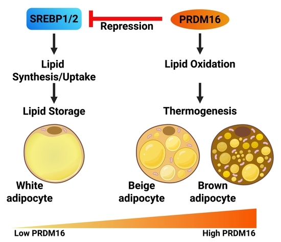 46. Seale, P.; Bjork, B.; Yang, W.; Kajimura, S.; Chin, S.; Kuang, S.; Scimè, A.; Devarakonda, S.; Conroe, H.M.; Erdjument-Bromage, H.; et al. PRDM16 controls a brown fat/skeletal muscle switch. Nature 2008, 454, 961–967. [Google Scholar] [CrossRef] [PubMed]