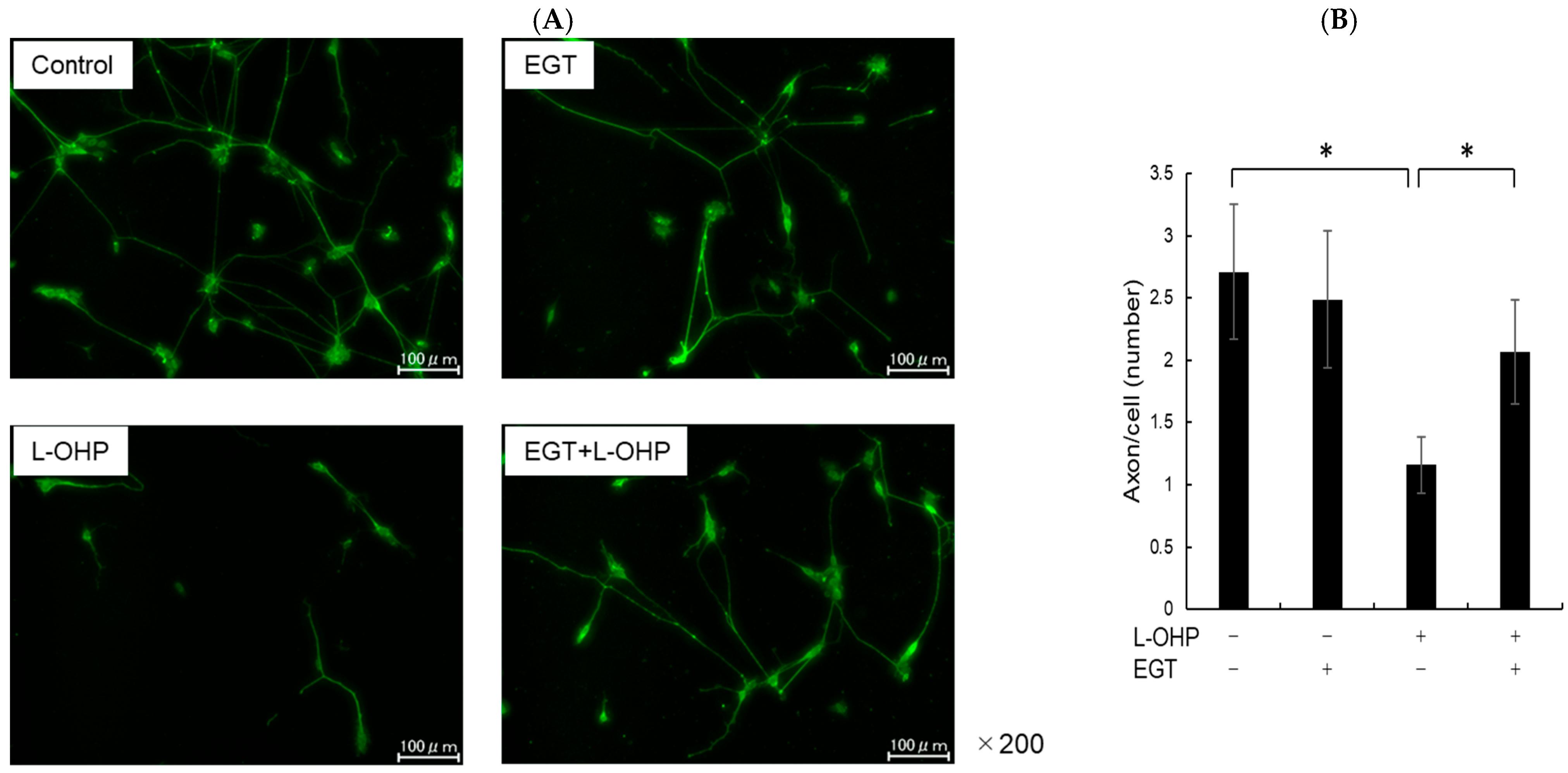 2.1. EGT Protects SH-SY5Y Cells from Oxaliplatin-Induced Cytotoxicity via Anti-Apoptotic and Antioxidant Mechanism