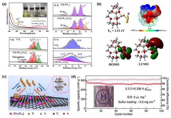 - Wu, L.; Jin, Z.; Xie, X.; Lian, F.; Lu, J.; Wang, W. Lithium-reinforced polyoxometalate as effective catalytic interlayer for high-sulfur-loading and long-life lithium-sulfur batteries. Energy Storage Mater. 2025, 77, 104167. [Google Scholar] [CrossRef]