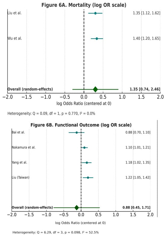 | Nakamura et al. (2023) [12] | Japan | 4621 | Acute Ischemic | Decrease rate from baseline | mRS ≥ 3 and 3–5 at 3 months; 3 months |