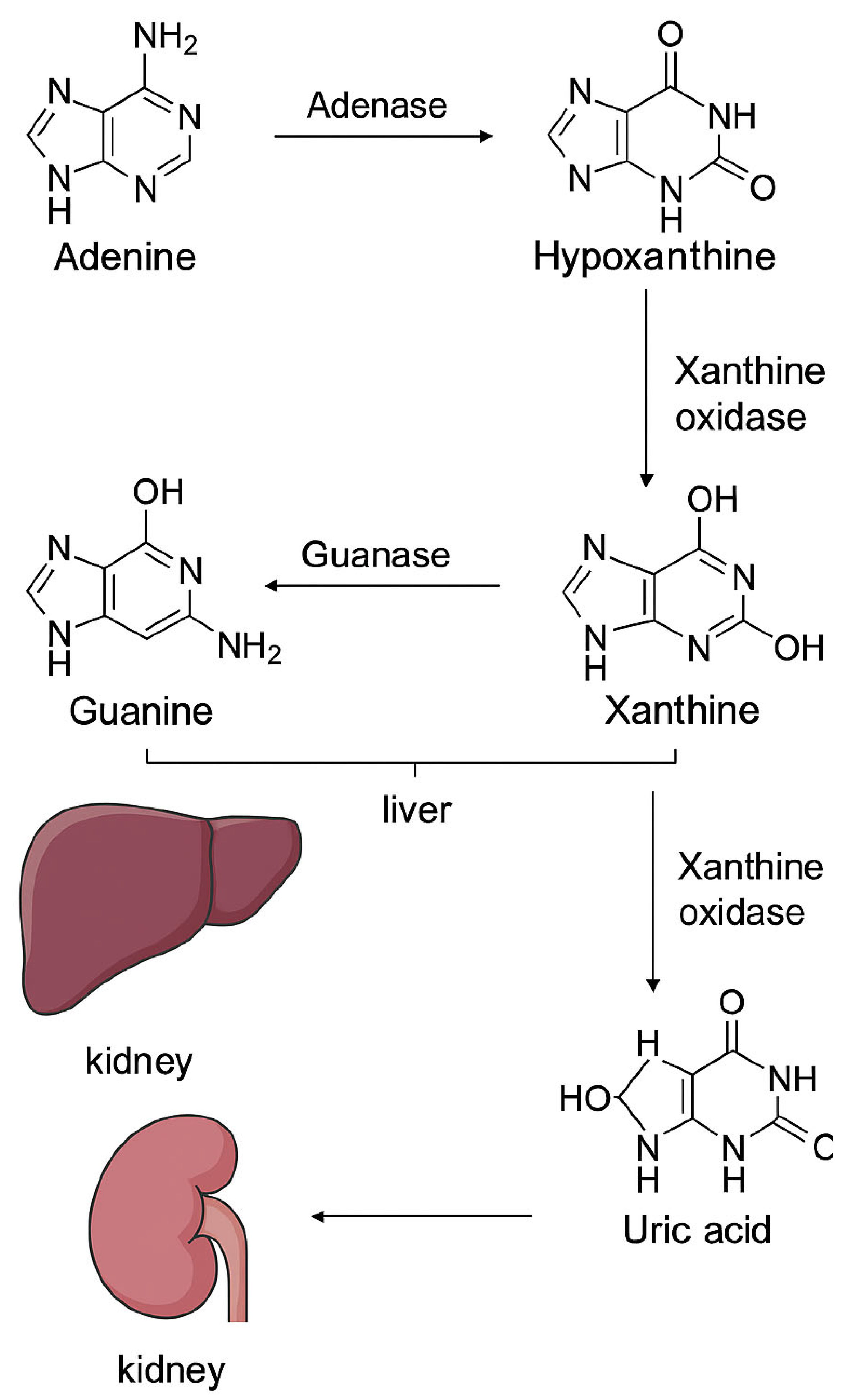 - Ndrepepa, G. Uric acid and cardiovascular disease—Recent evidence on the association and underlying mechanisms. J. Lab. Precis. Med. 2025, 10, 8. [Google Scholar] [CrossRef]