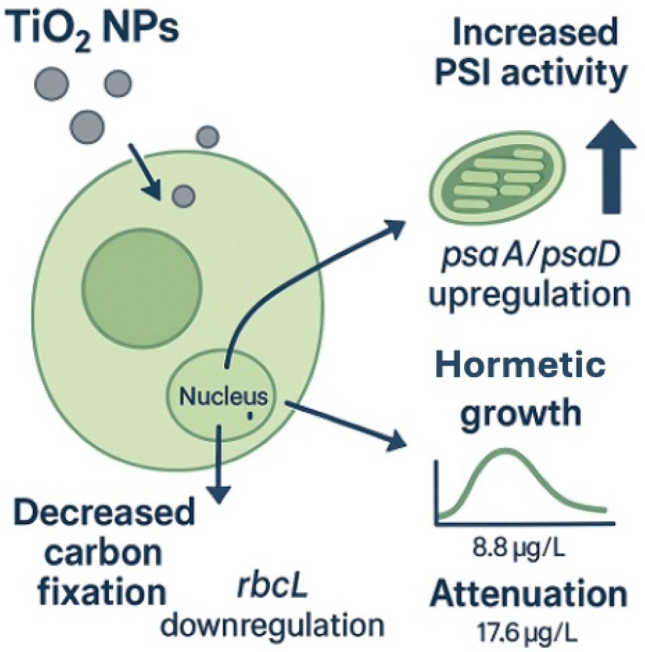 Gutiérrez, G.G.; Rivas-Valdés, F.; Benavente, B.P.; Olivares, R.; Hepp, M.I.; Barra, R.O.; Urrutia, R. Toxicological Responses of Photosynthetic Genes in Chlorella vulgaris Exposed to Environmentally Relevant Concentrations of TiO2 Nanoparticles. Int. J. Mol. Sci. 2025, 26, 10271. https://doi.org/10.3390/ijms262110271