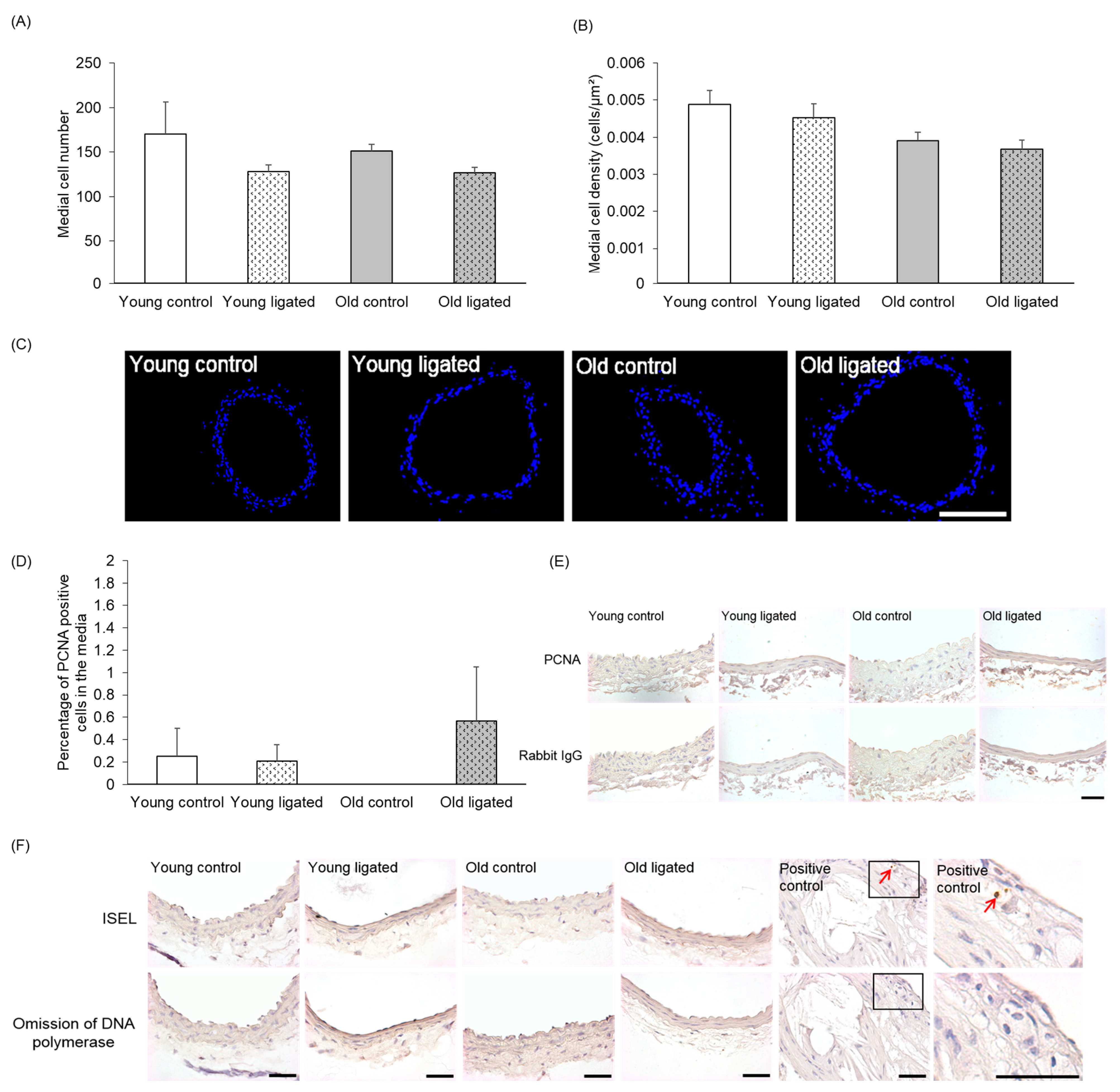 2.2. Medial Cell Number and Density, Proliferation and Apoptosis Did Not Differ in Old and Young Mice