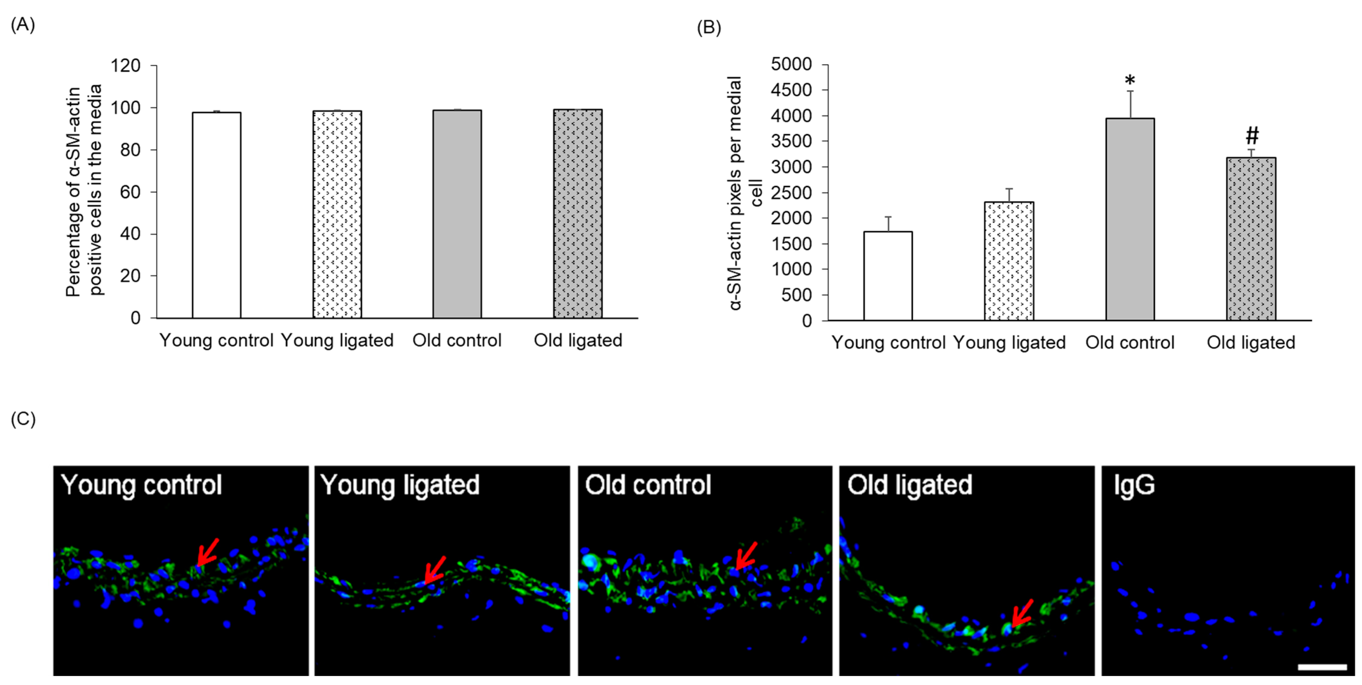 2.3. α-SM-Actin Content per Medial Cell Was Enhanced with Age but Unaffected by Elevated Blood Flow