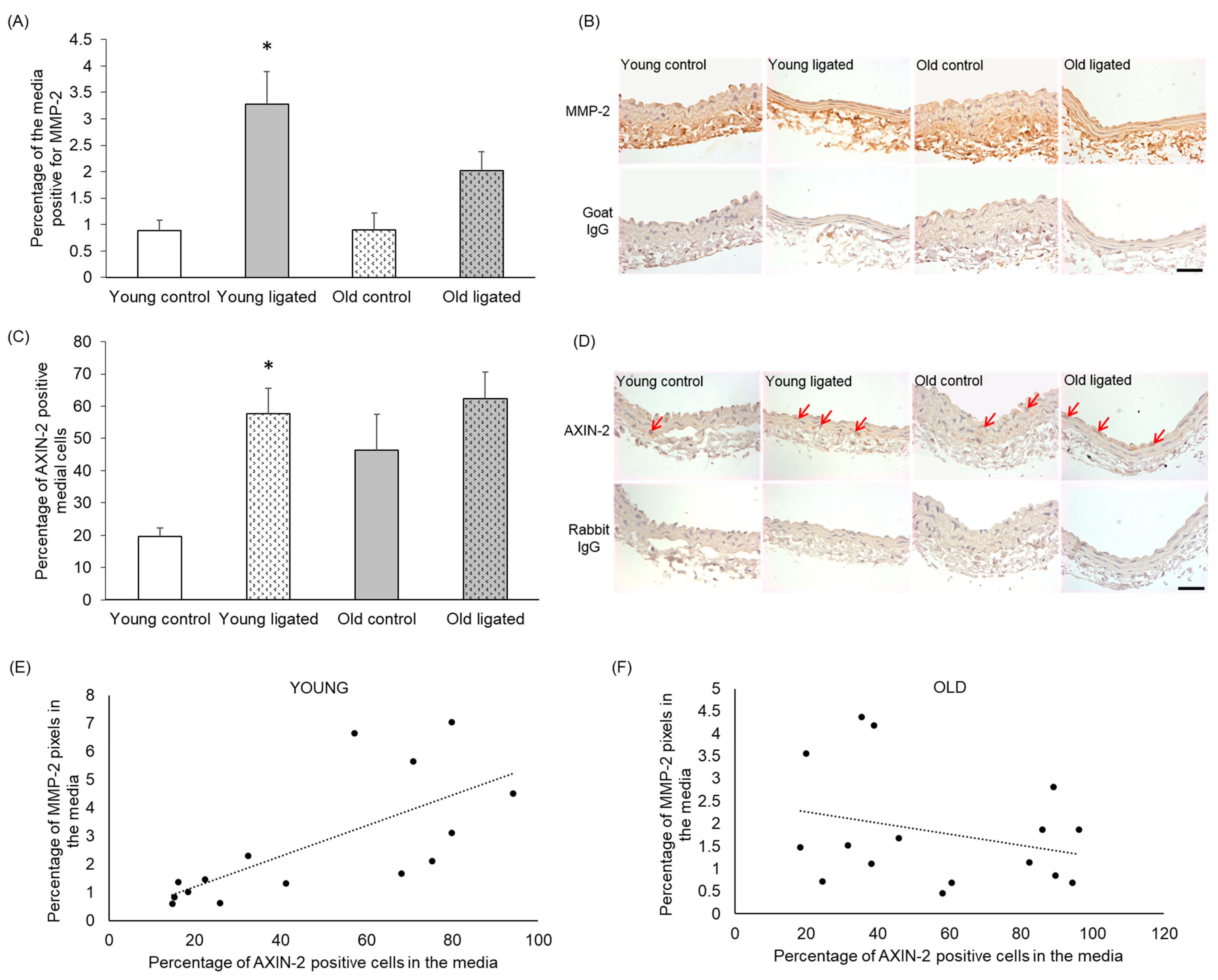 2.8. Medial AXIN-2 and MMP-2 Abundance Correlated in Young, but Not Old, Mice