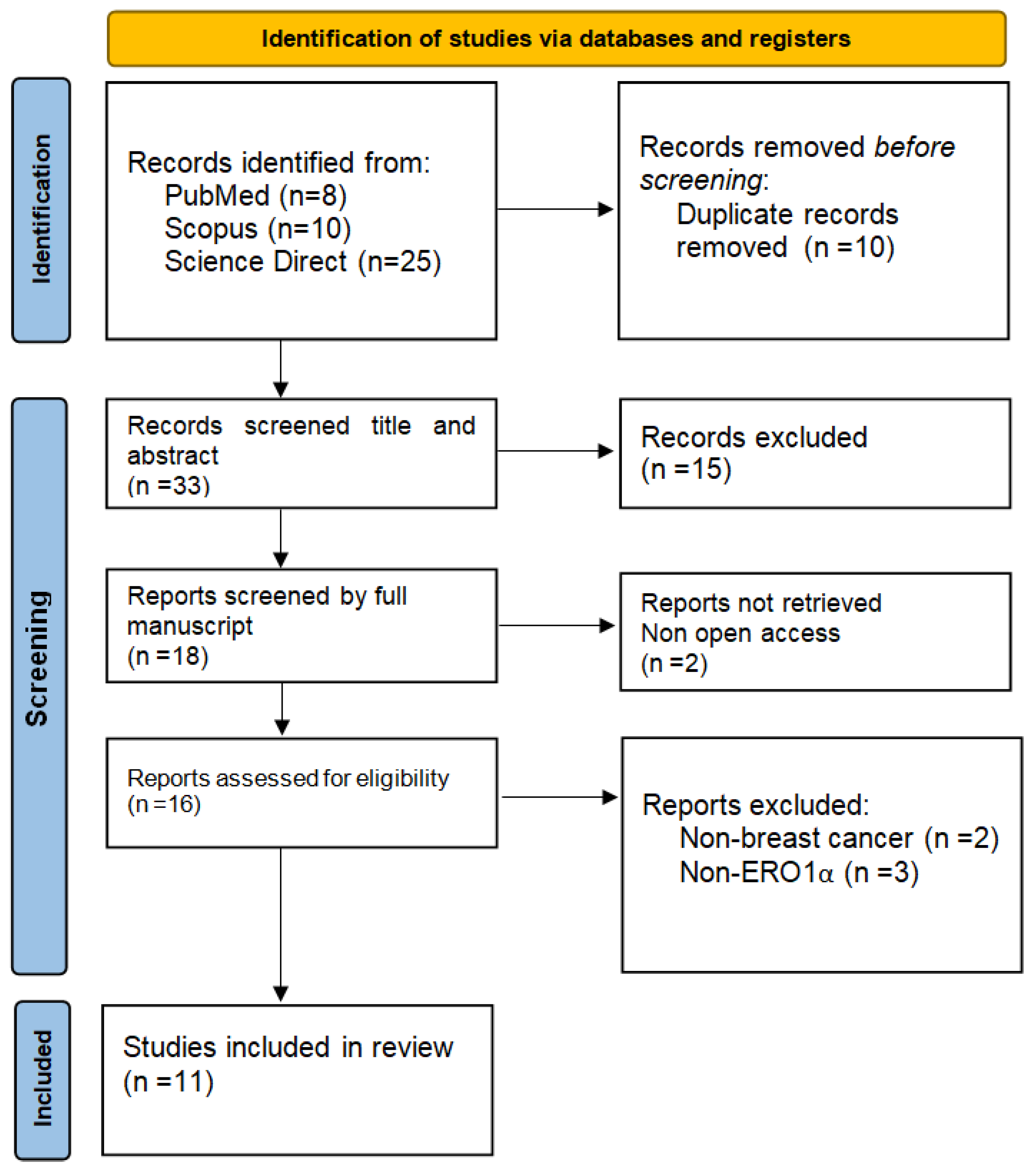 - Open Science Framework. ERO1α as a Potential Drug Target for Breast Cancer: A Systematic Review of Current Evidence. Available online: https://osf.io/sx3u2/?view_only=c5412e1a180844c6aab8e56f5d5c911a (accessed on 4 October 2025).