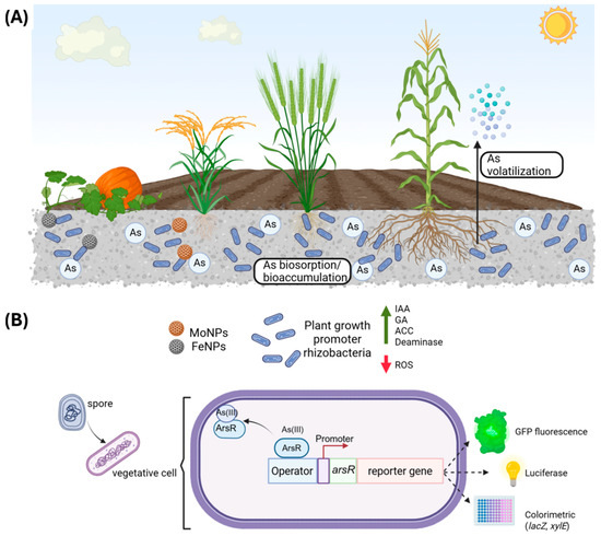 While E. coli, the Gram-negative bacterial model to study As interactions, is an enterobacteria found in the intestines of animals, the Gram-positive model B. subtilis is found in soil, water, and plants [3,24]. Consequently, the molecular mechanisms underpinning As resistance may significantly differ between the two genera. Therefore, the following sections are aimed at describing mechanistic aspects regarding the processing of As conducted on B. subtilis and other Firmicutes.
