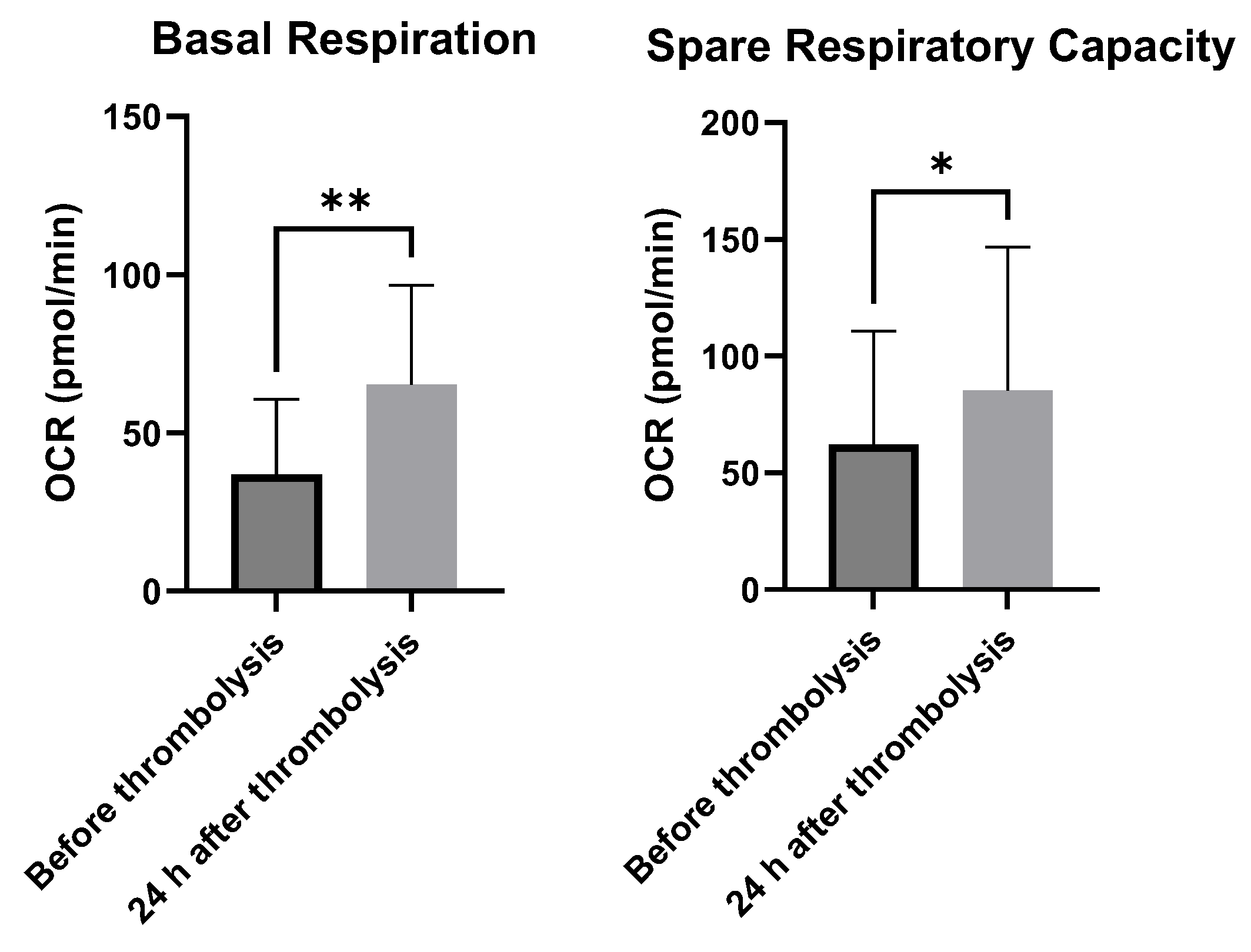 3.1. Mitochondrial Spare Respiratory Capacity, Basal Respiration and Energetic Adaptation in Ischemic Stroke