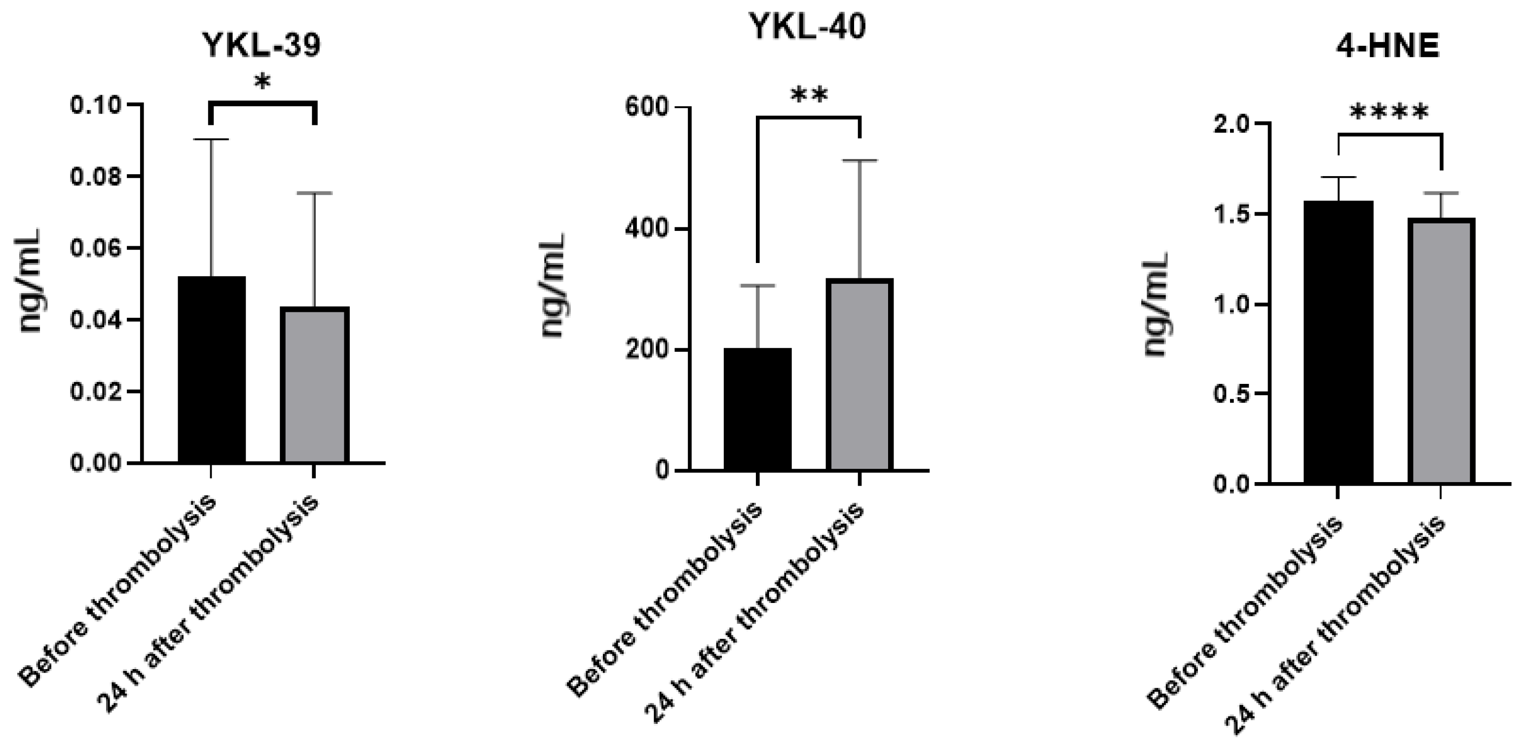 2.3. Plasma Levels of YKL-39, YKL-40 and 4-HNE