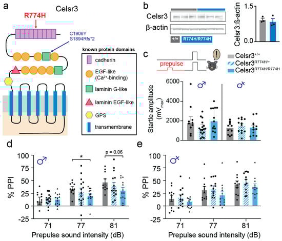 2.1. Celsr3R774H/R774H Mice Show Sex-Specific Sensorimotor Gating Deficits