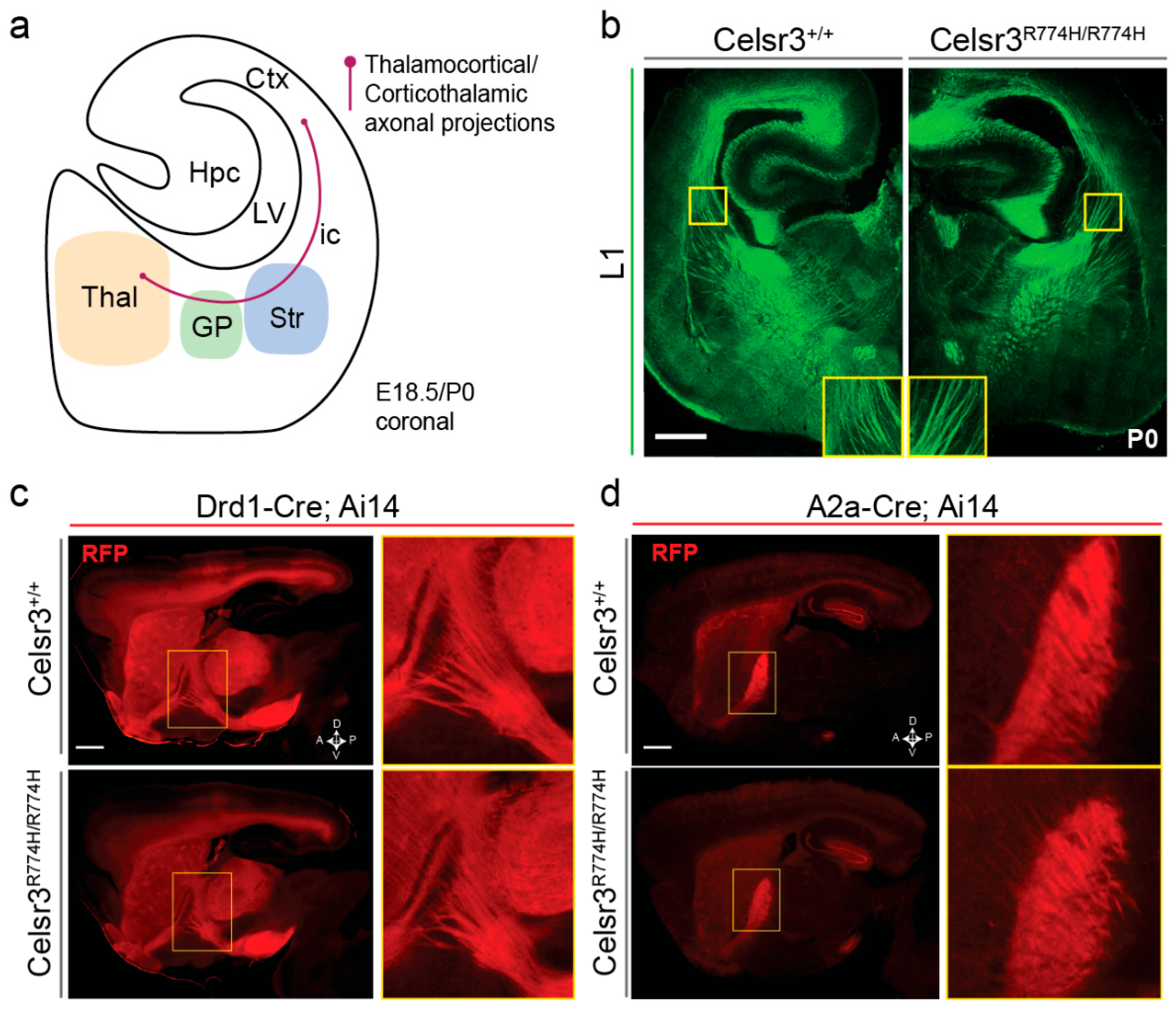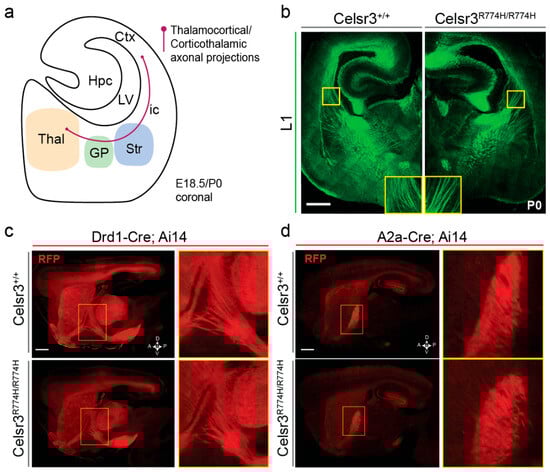 2.5. Axon Tract Development Is Grossly Normal in Celsr3R774H/R774H Mice