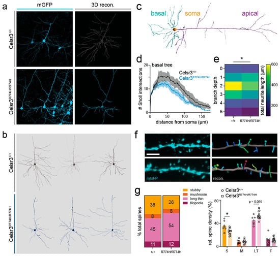 2.7. Cortical Pyramidal Neuron Dendritic Patterning Is Affected in Celsr3R774H/R774H Mice