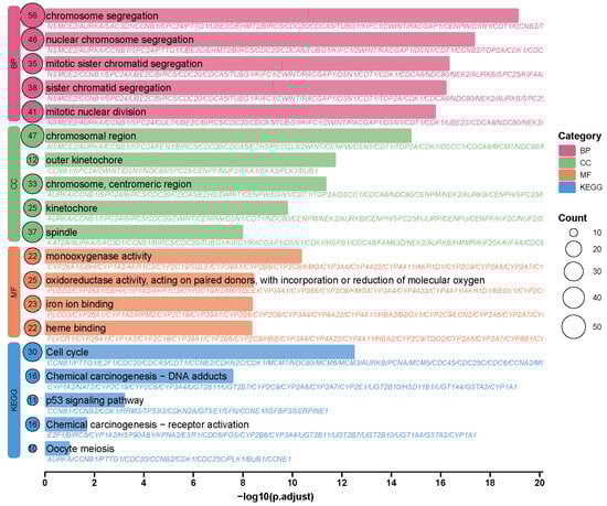 GO enrichment analysis (BP, CC, MF) and KEGG pathway significance.