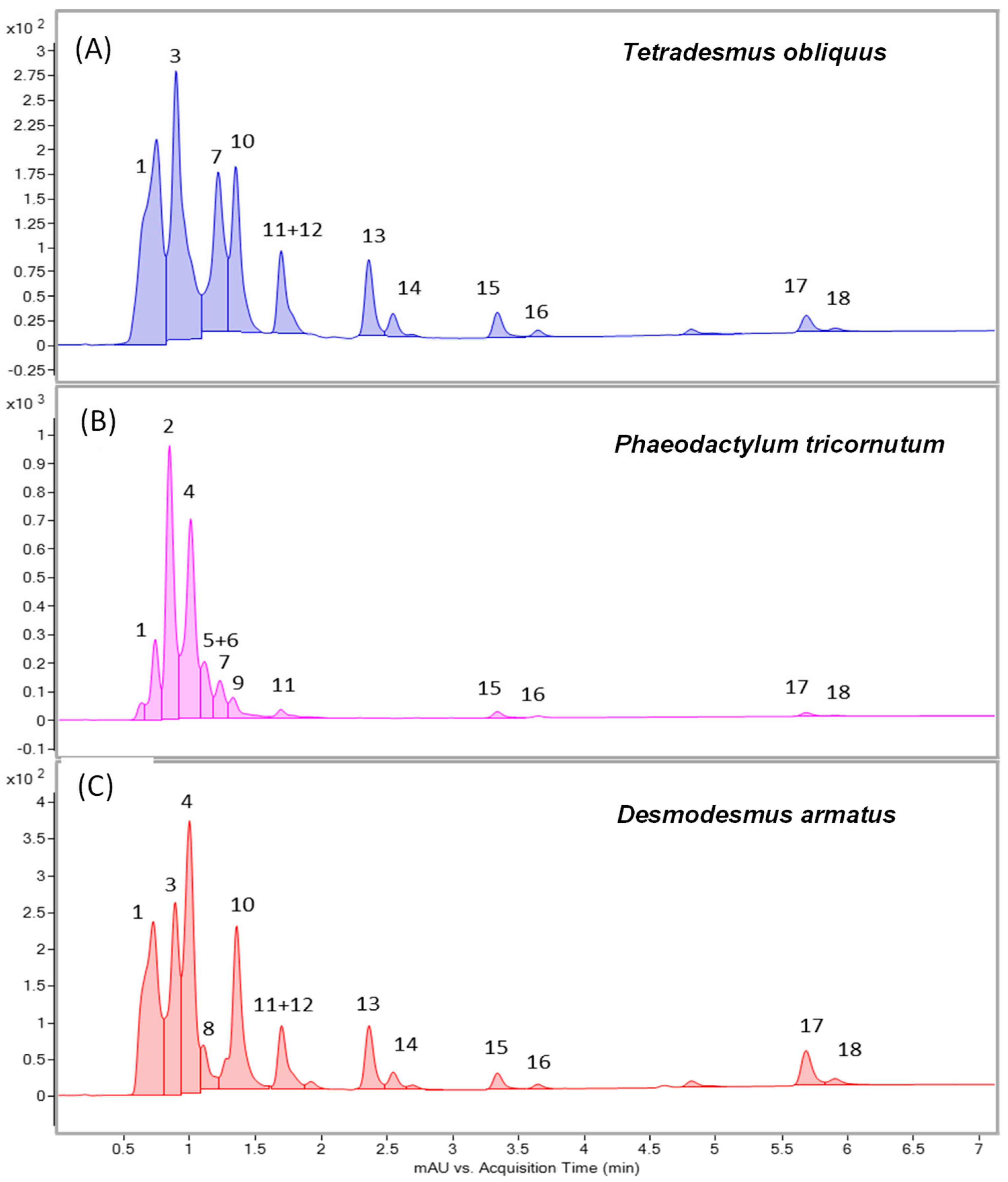 2.1. Characterisation of Microalgae Extracts
