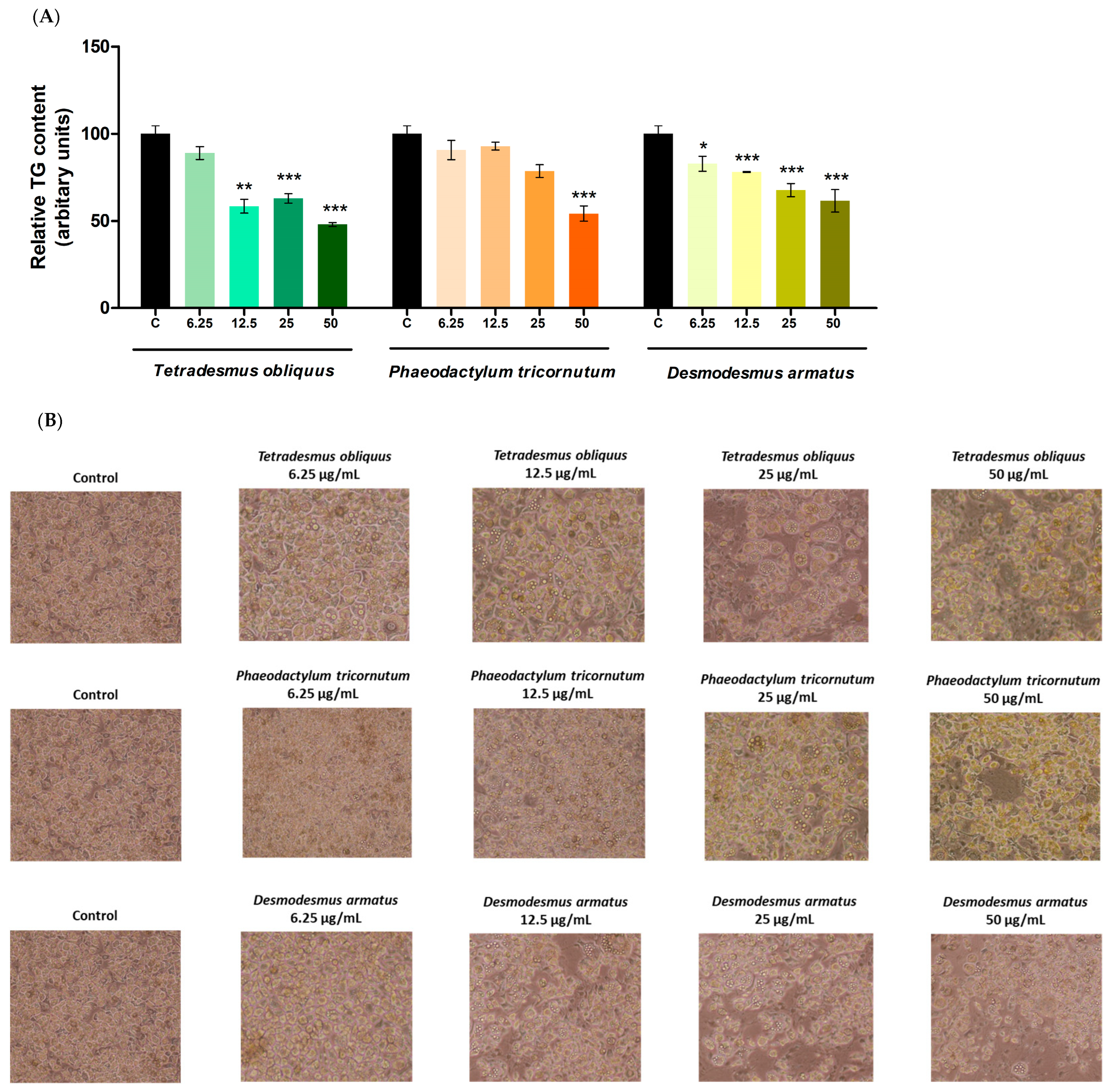 2.2. Effects on Cell Viability and Triglyceride Content
