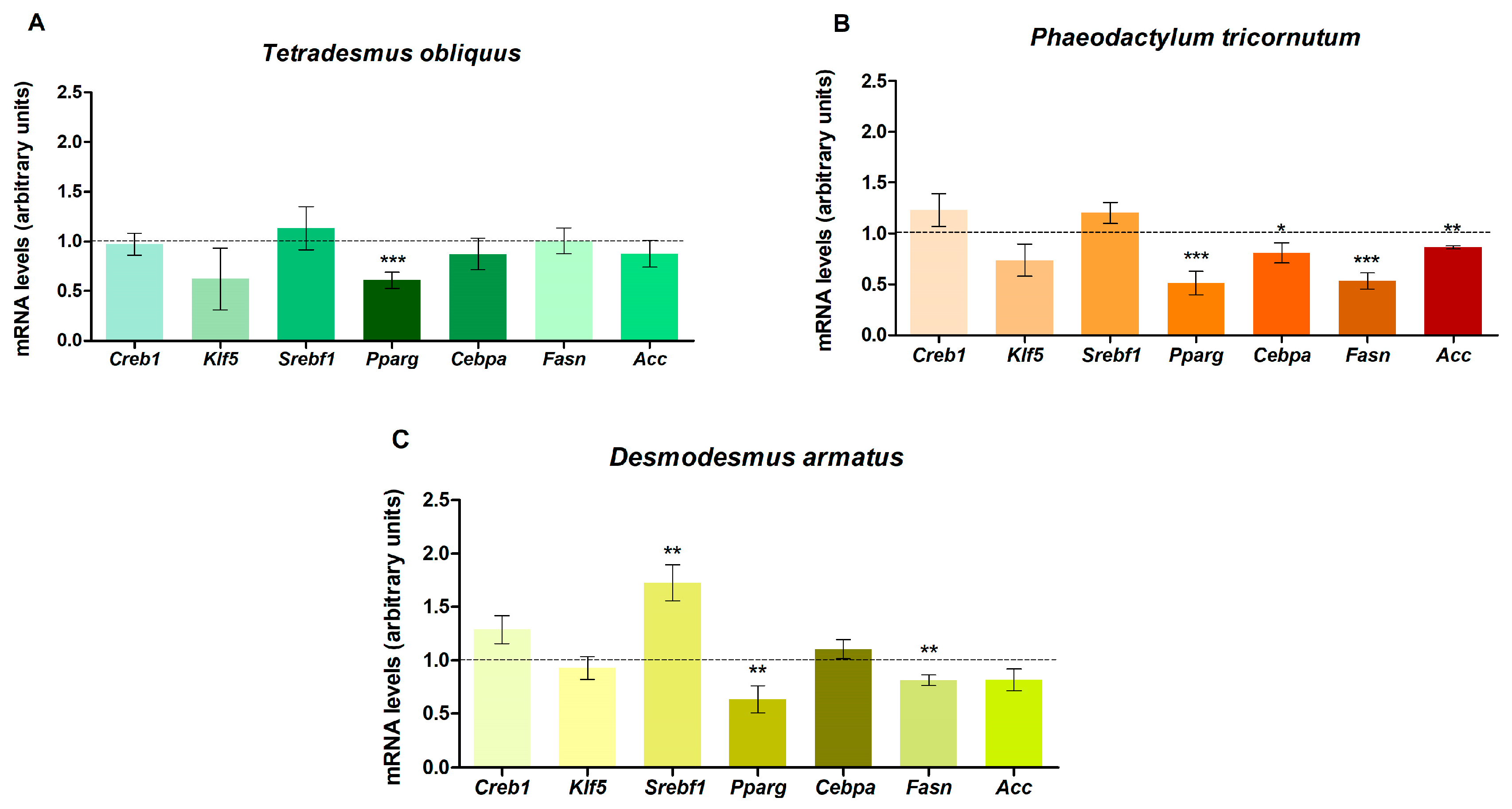 2.3. Effect of Microalgae Pigment Extracts on Gene Expression in Maturing Pre-Adipocytes