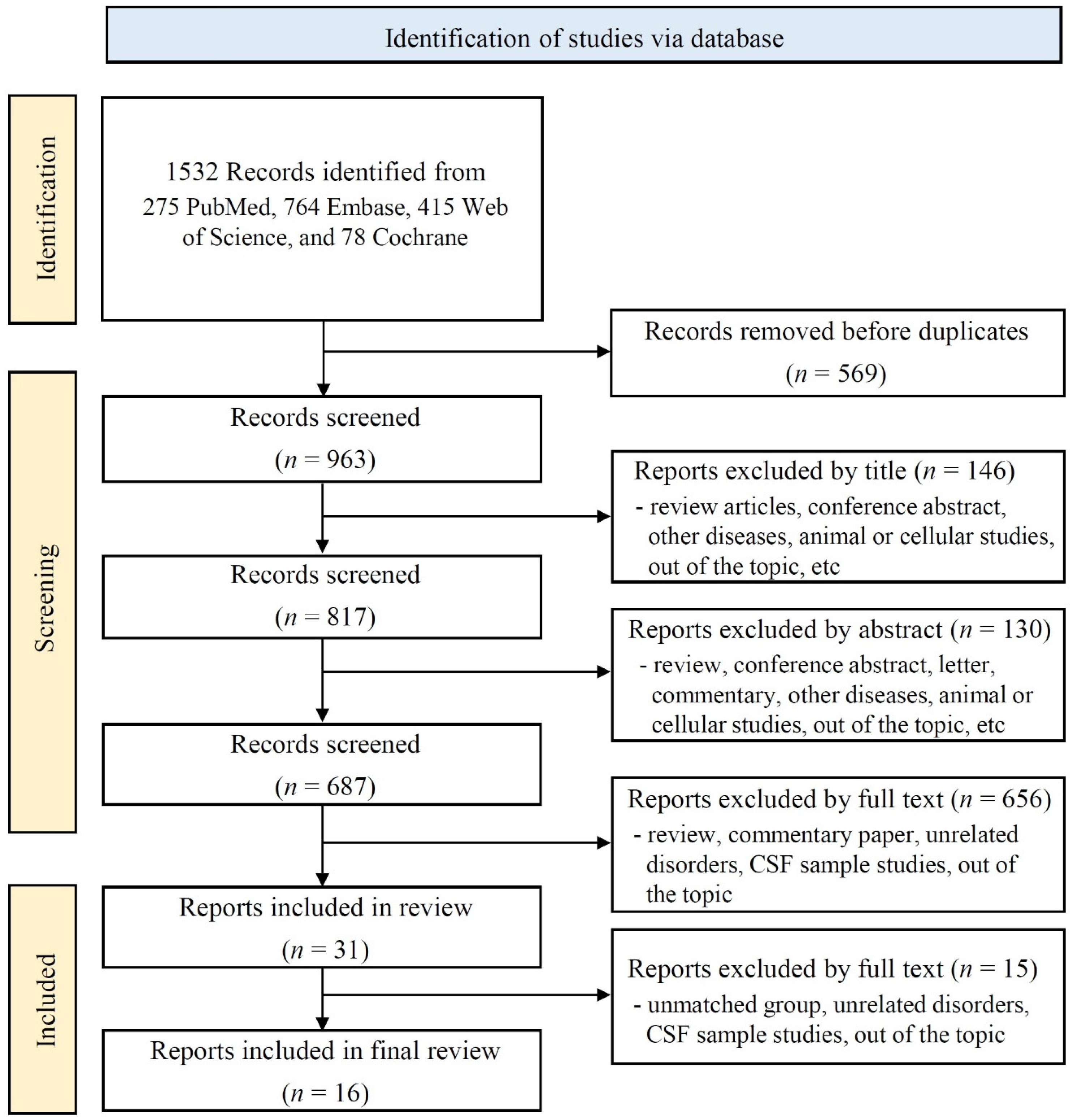| Janelidze et al., 2020 [19] | Sweden | Cohort1: CU− | 26 | 10 | 74 (71~78) | MMSE | 29 (28~30) |