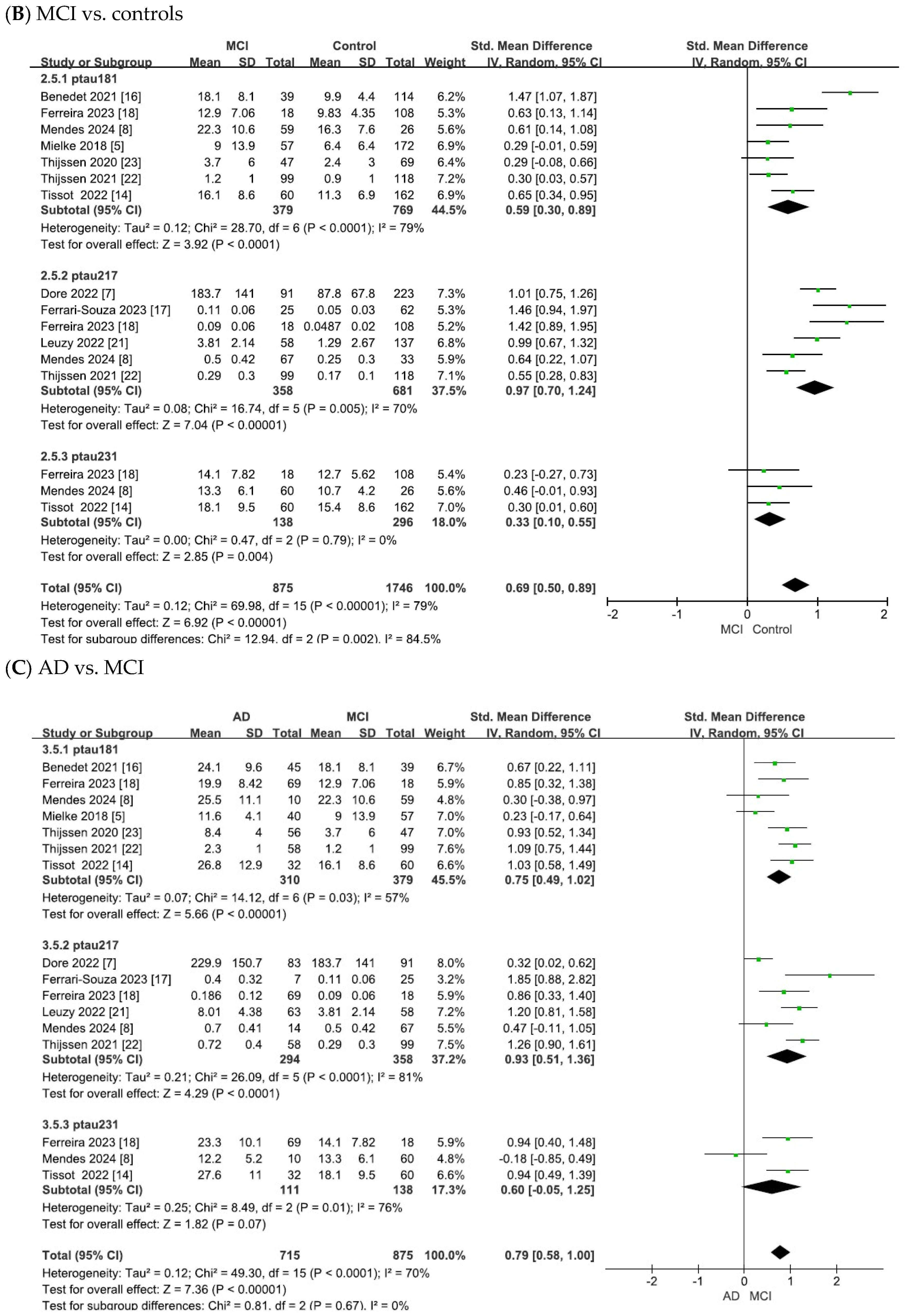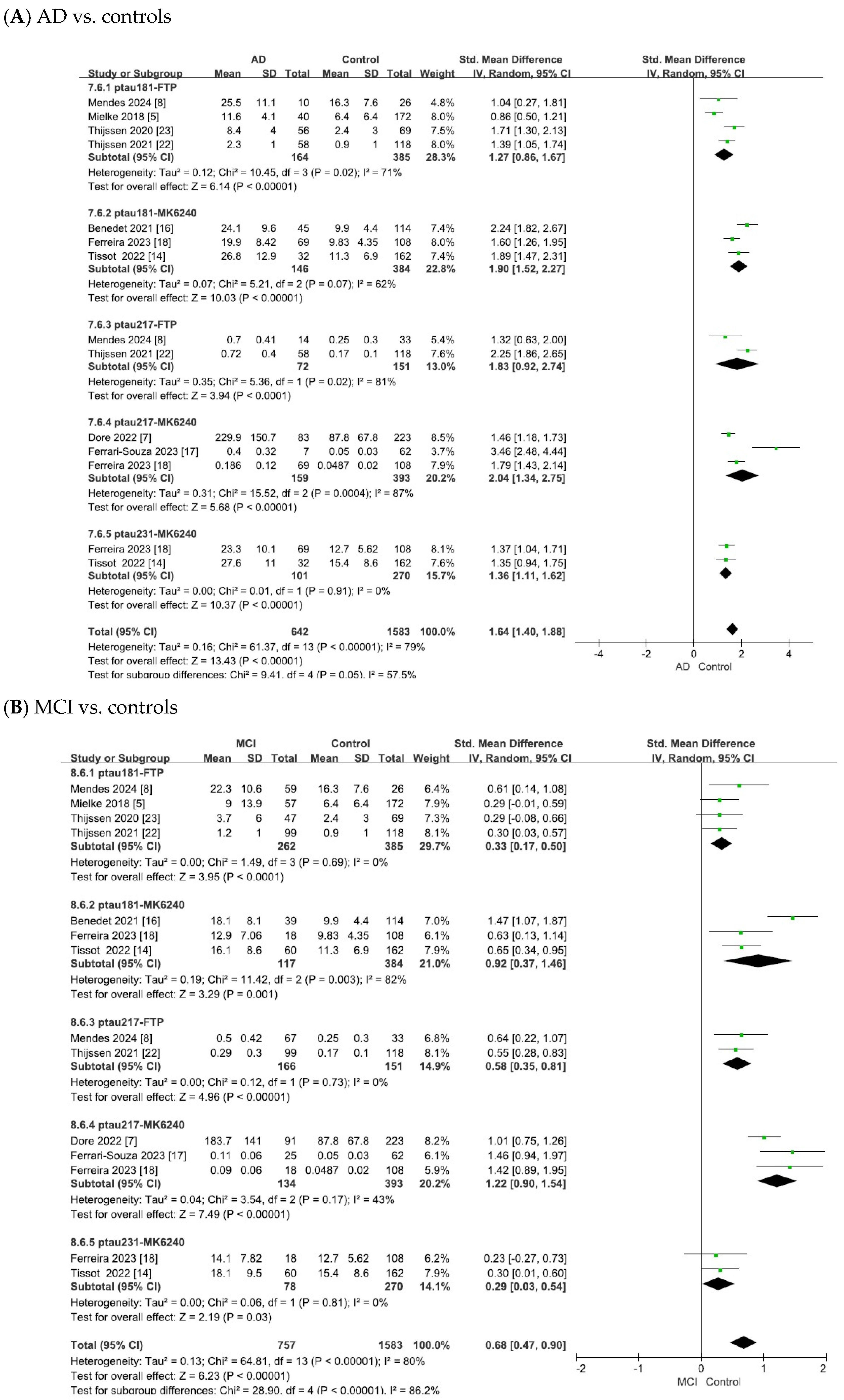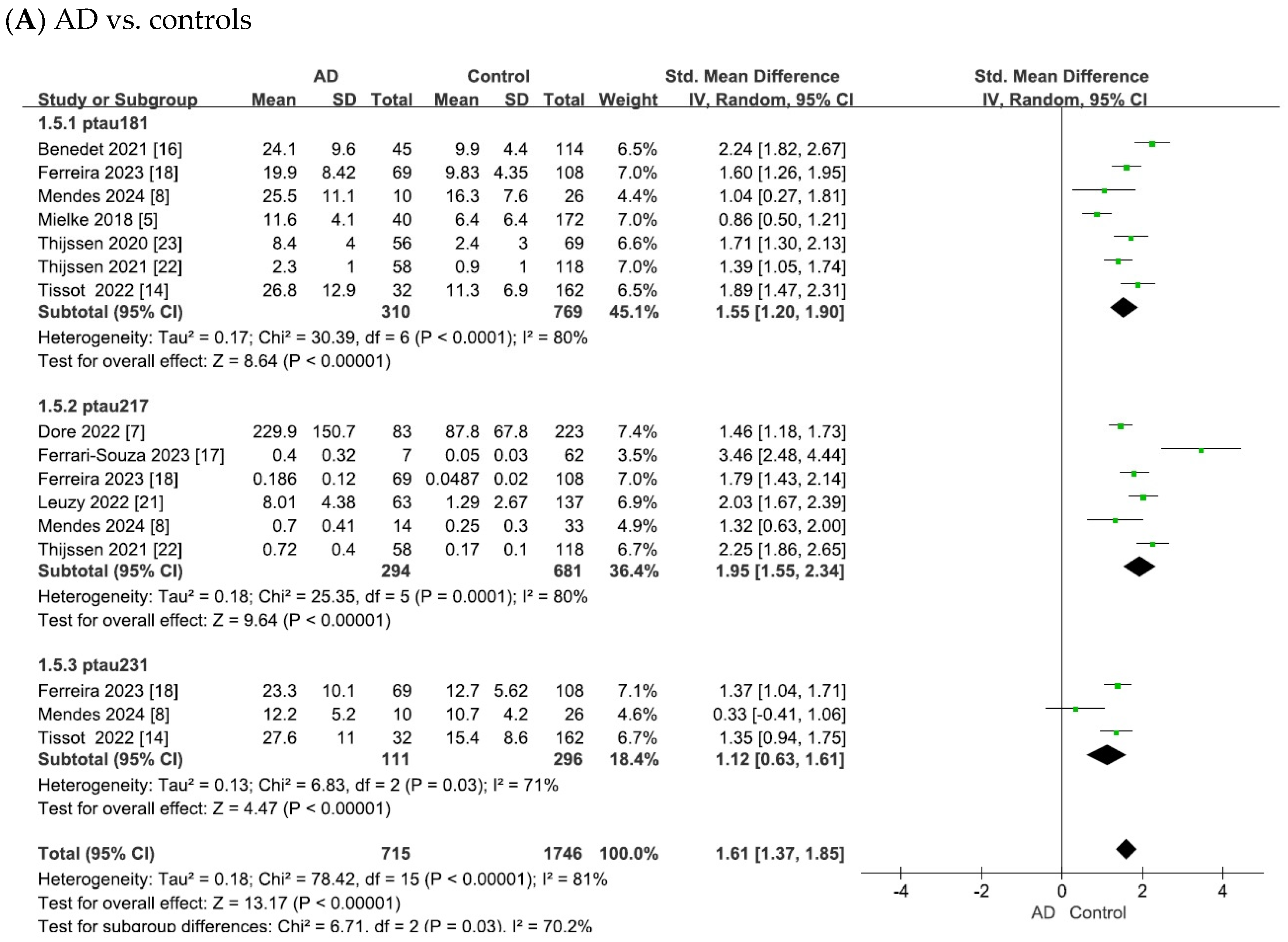 3.4. Meta-Analysis of Plasma Tau Biomarkers