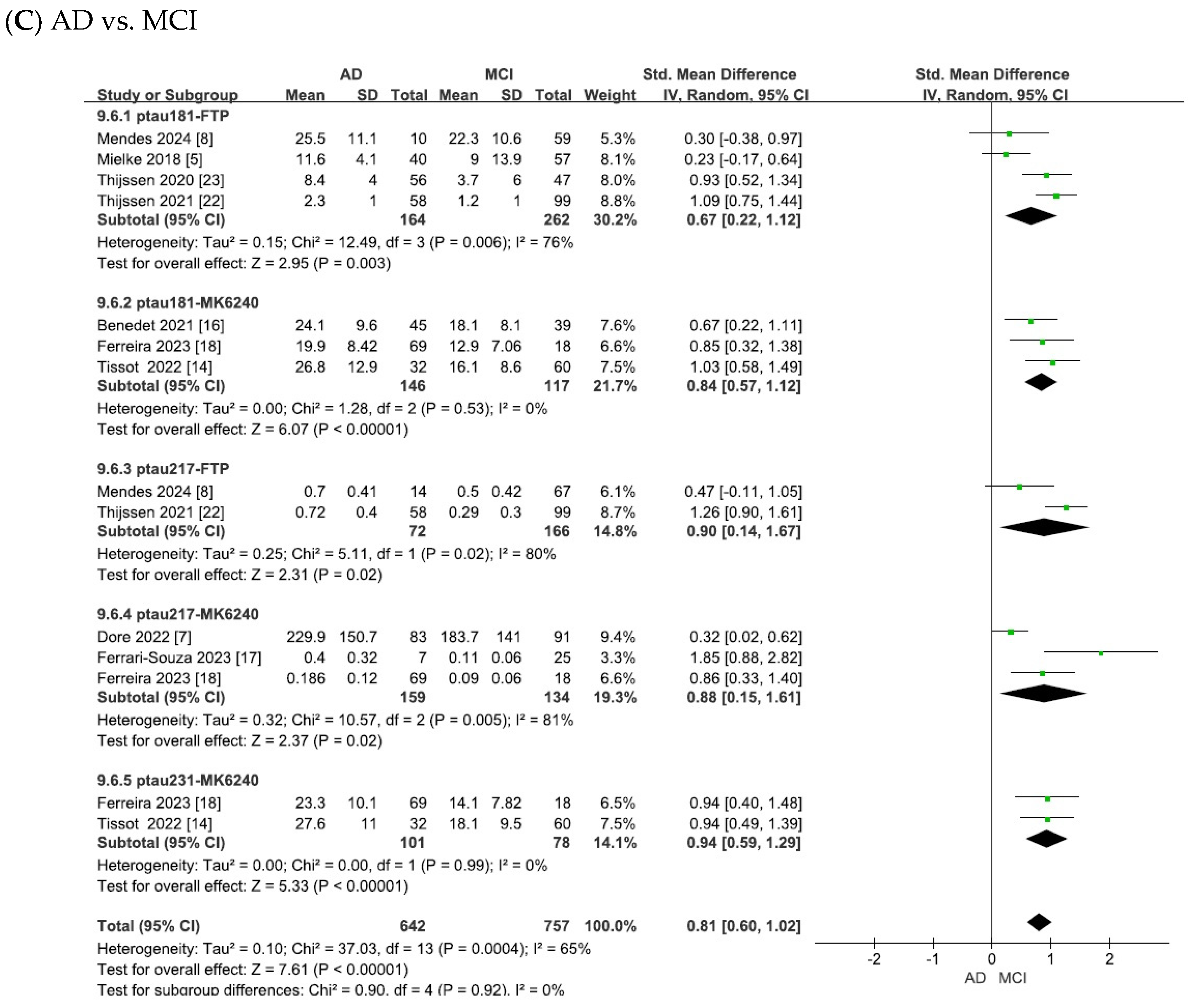 3.6. Meta-Analysis Matching Plasma Tau Isoforms with Tau PET