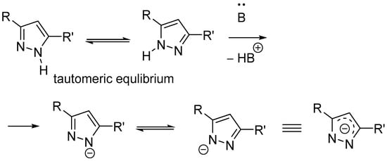 Pyrazole nitrogen atoms are known to have similar electronic properties. Therefore, NH-pyrazoles can exist in solution as an equilibrium mixture of two tautomers (Scheme 10). Pyrazolates are also expected to exhibit similar dual behavior due to the negative charge delocalization. This explains the lack of selectivity in some pyrazole N-alkylations [].