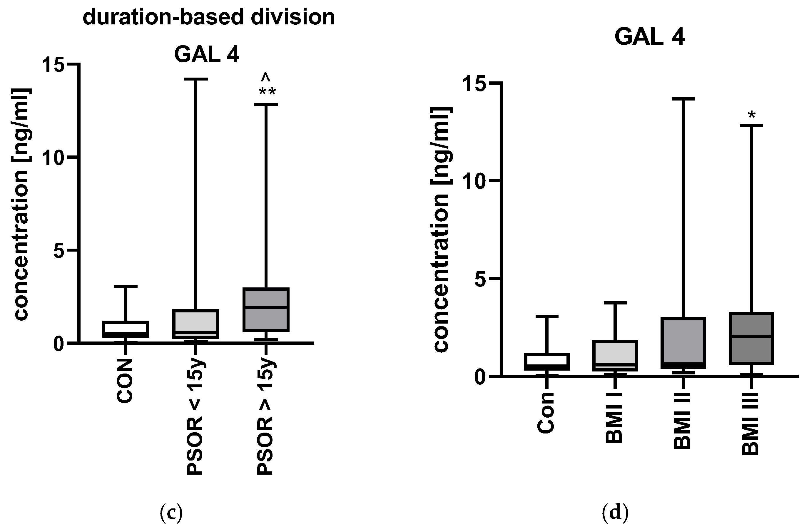Baran, A.; Nowowiejska, J.; Parzych, J.; Hermanowicz, J.M.; Sieklucka, B.; Pawlak, D.; Flisiak, I. Plasma Galectin-4 and Charcot-Leyden Crystal Protein/Galectin-10 as Emerging Biomarkers of Metabolically Induced Inflammation in Patients with Psoriasis. Int. J. Mol. Sci. 2025, 26, 10339. https://doi.org/10.3390/ijms262110339