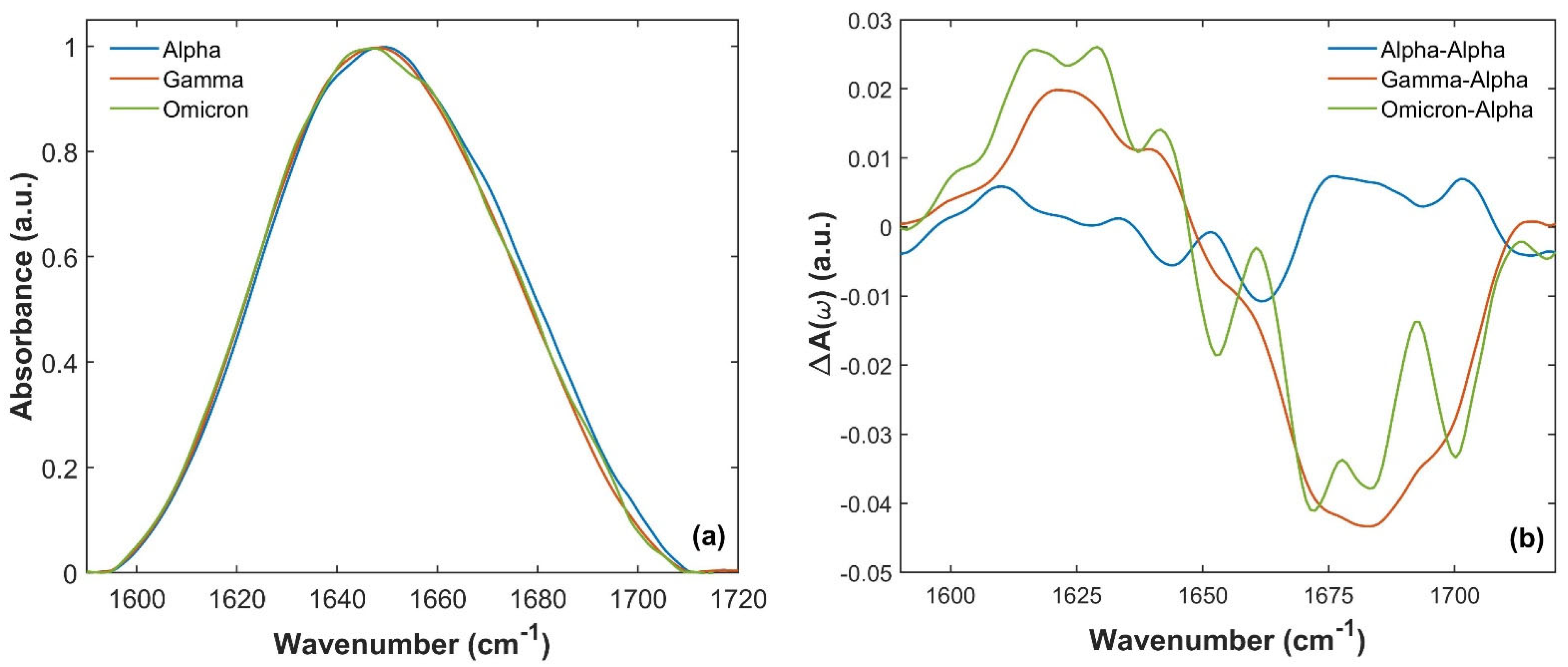 - Mancini, T.; Macis, S.; Mosetti, R.; Luchetti, N.; Minicozzi, V.; Notargiacomo, A.; Pea, M.; Marcelli, A.; Ventura, G.D.; Lupi, S.; et al. Infrared Spectroscopy of SARS-CoV-2 Viral Protein: From Receptor Binding Domain to Spike Protein. Adv. Sci. 2024, 11, 2400823. [Google Scholar] [CrossRef]